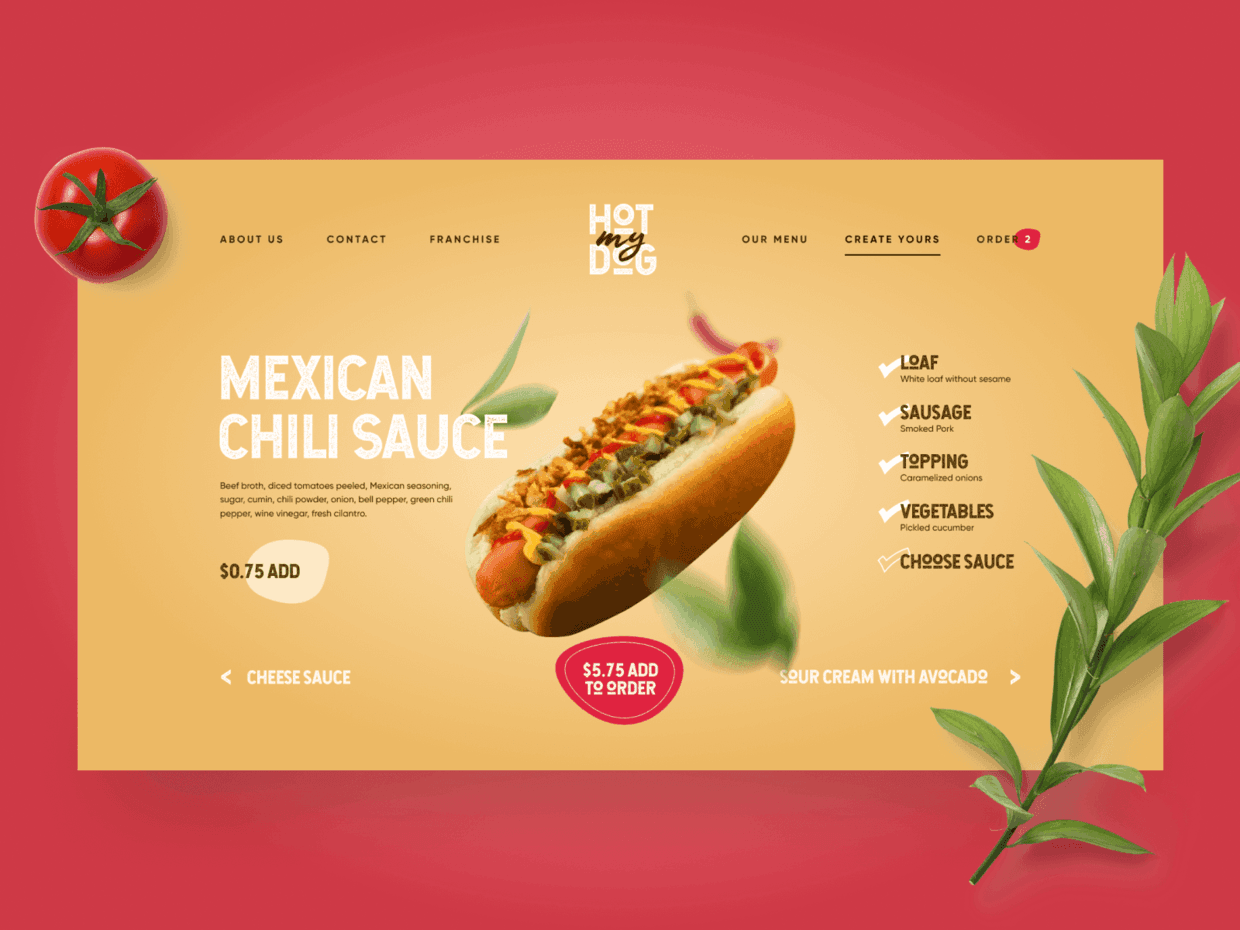 在页面底部显示菜品的一部分,提示用户可以滚动查看更多;此外,使用箭头作为方向提示,告知用户水平方向上也会看到更多信息: