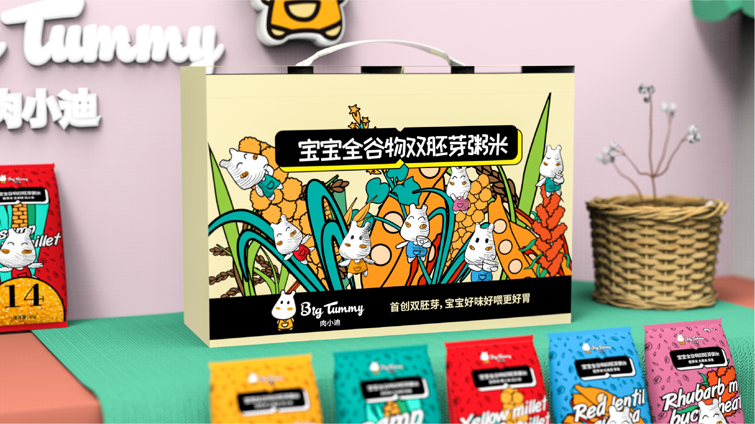 在强调天然、安全和高营养密度的基础上,通过包装设计展现出肉小迪儿童食品的专业性和信赖度。以可爱、温馨和专业为核心,传达给消费者优质食材和专业的辅食喂养服务。