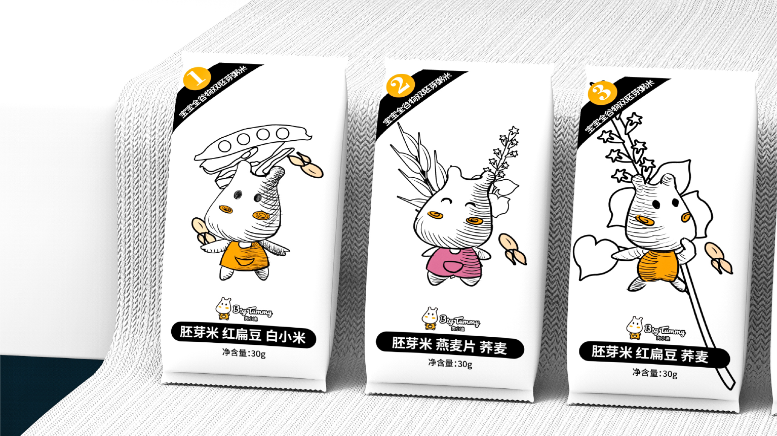 图案设计:设计可爱而富有童趣的图案,如动物、水果或蔬菜等,以吸引宝宝和家长的注意力。图案的线条要简约而流畅,注重表达出食材的新鲜和营养。