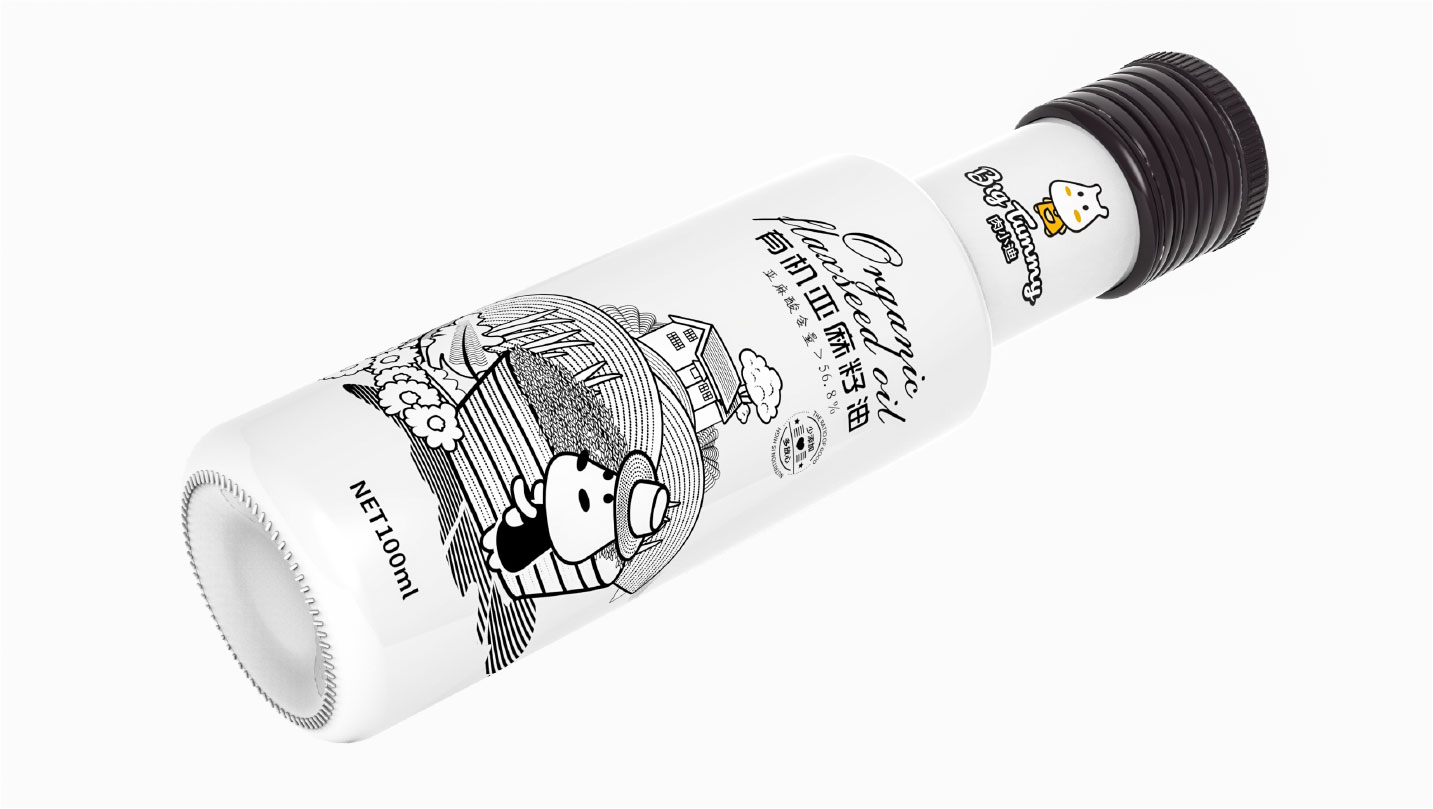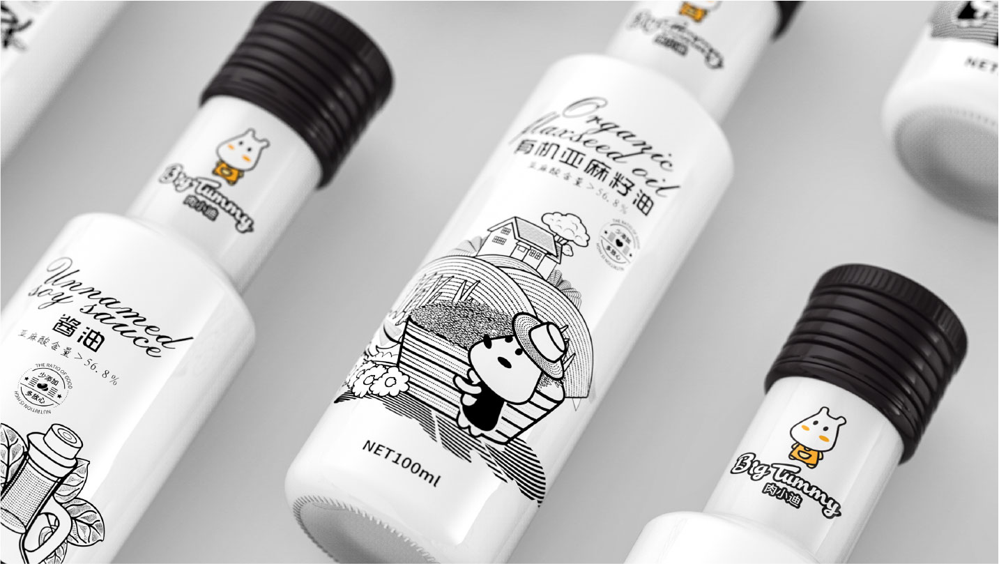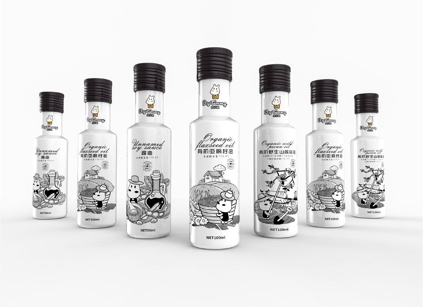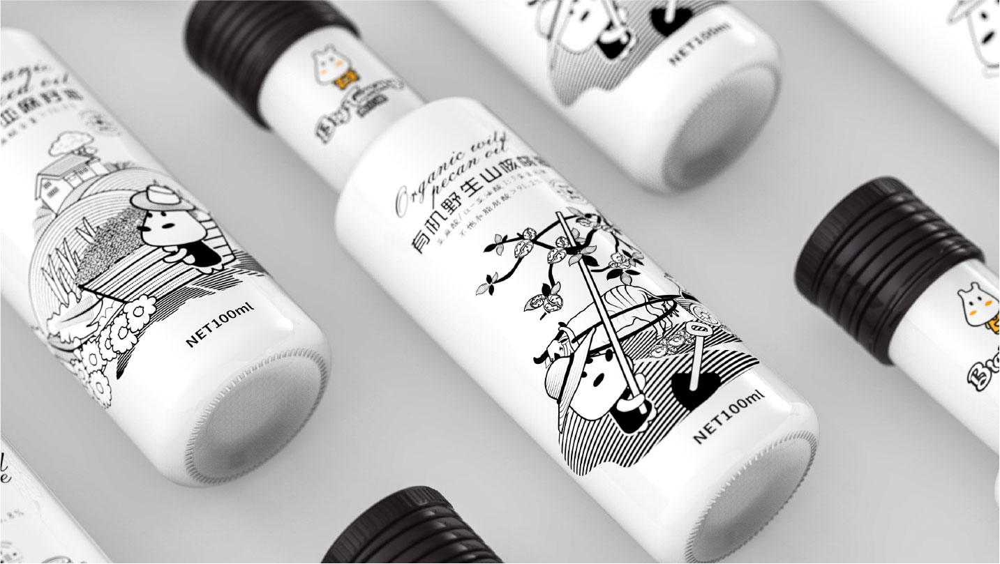 图文结合:在包装上可以添加可爱的卡通角色,介绍食用油的好处,增加教育意义。