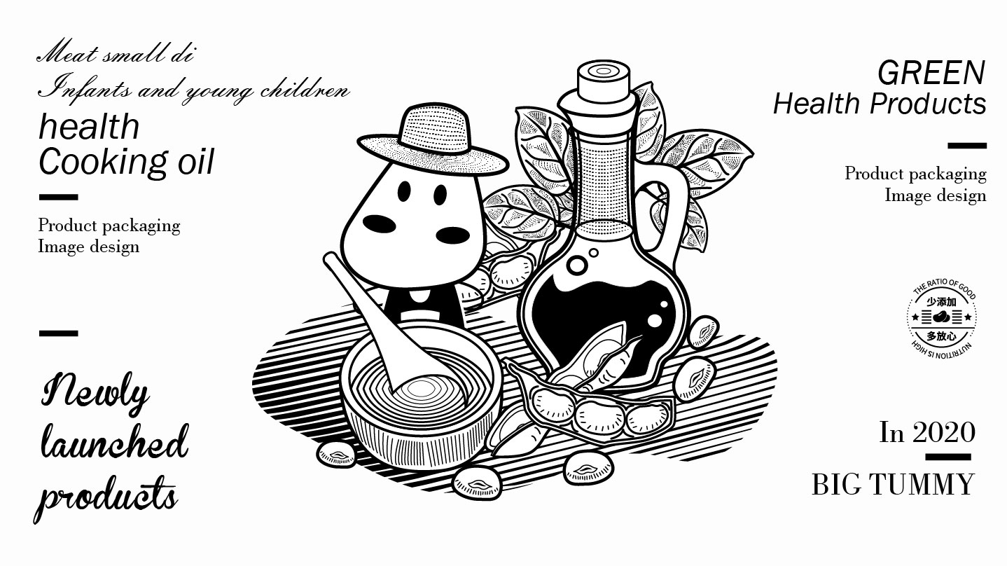 ——为“肉小迪”儿童食用油的产品包装设计,可以围绕以下几个关键要素进行构思,以确保吸引目标消费者并传达品牌的特色。