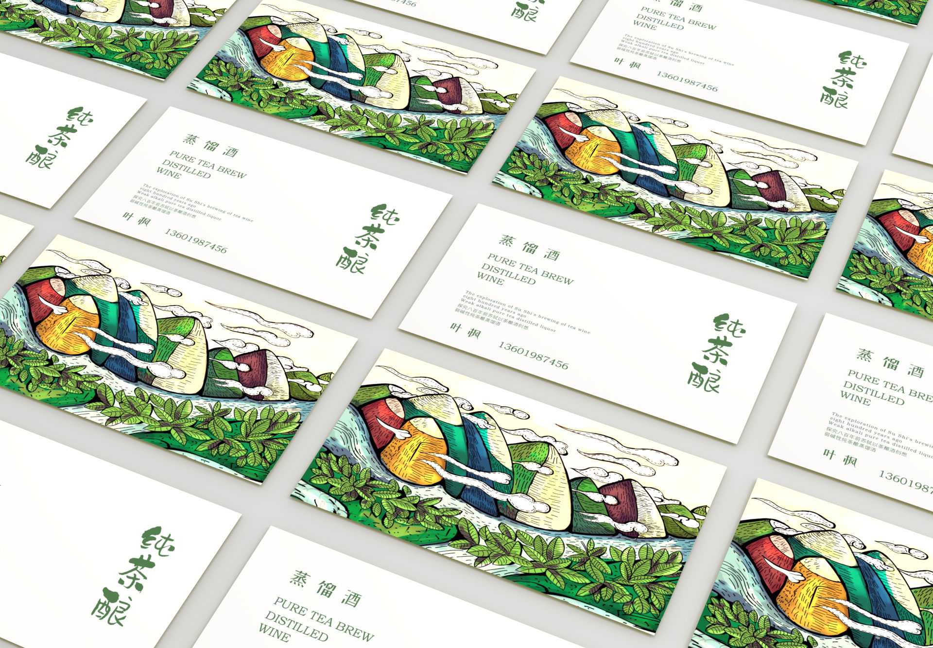 主色调:选择绿色(代表茶的自然)、金色(象征高贵和品质)和淡棕色(与酒的色调相呼应)。