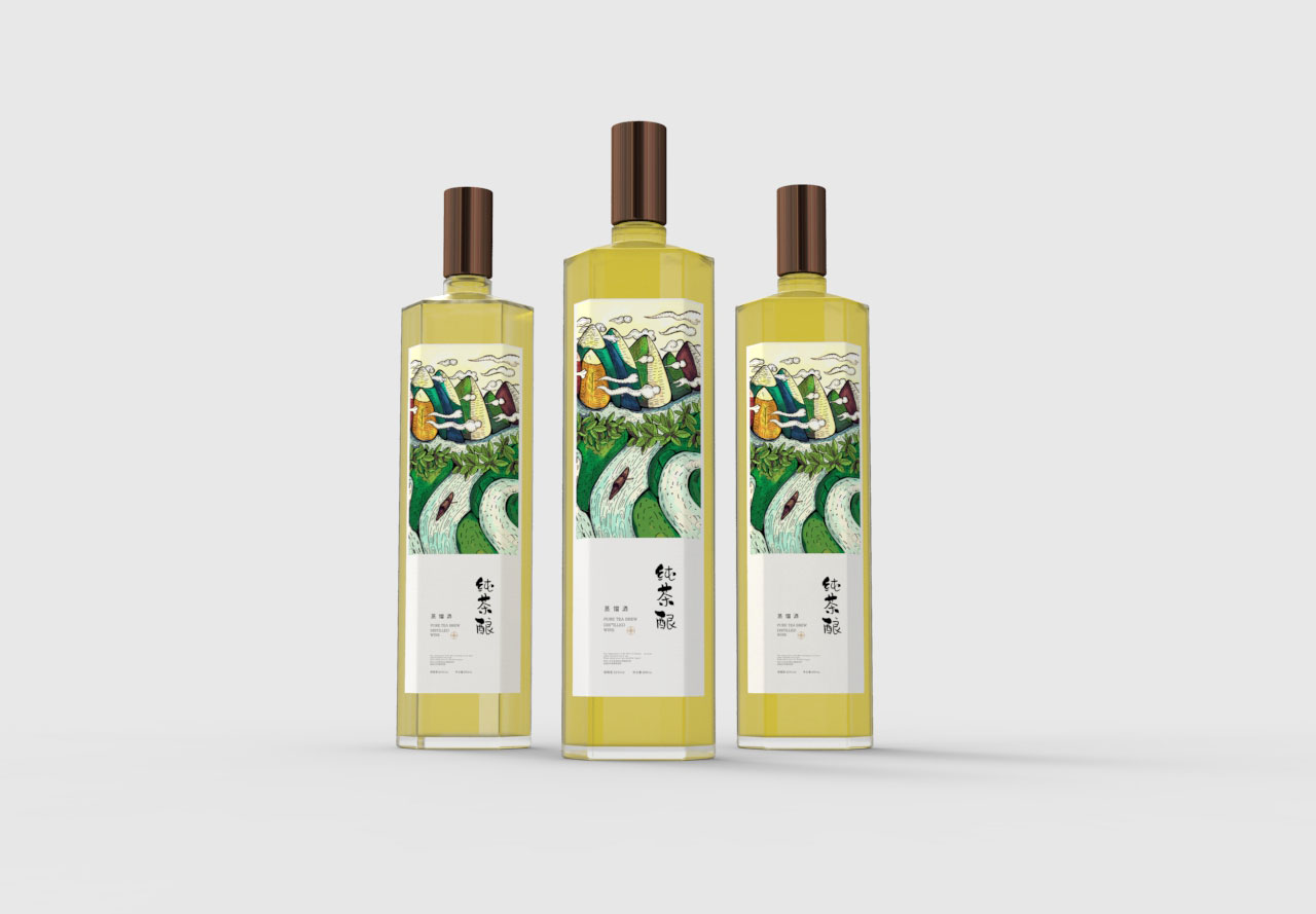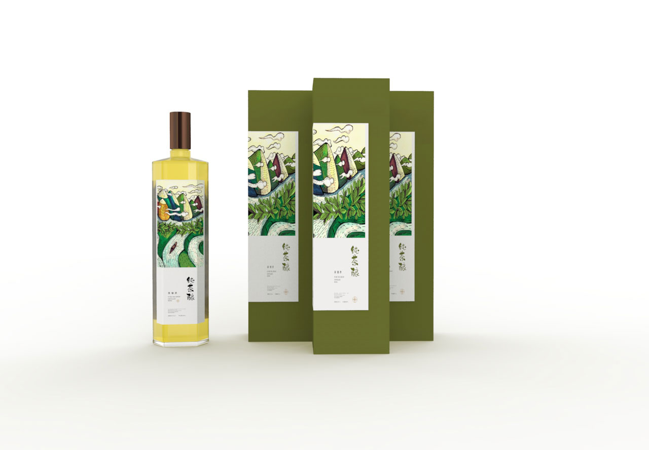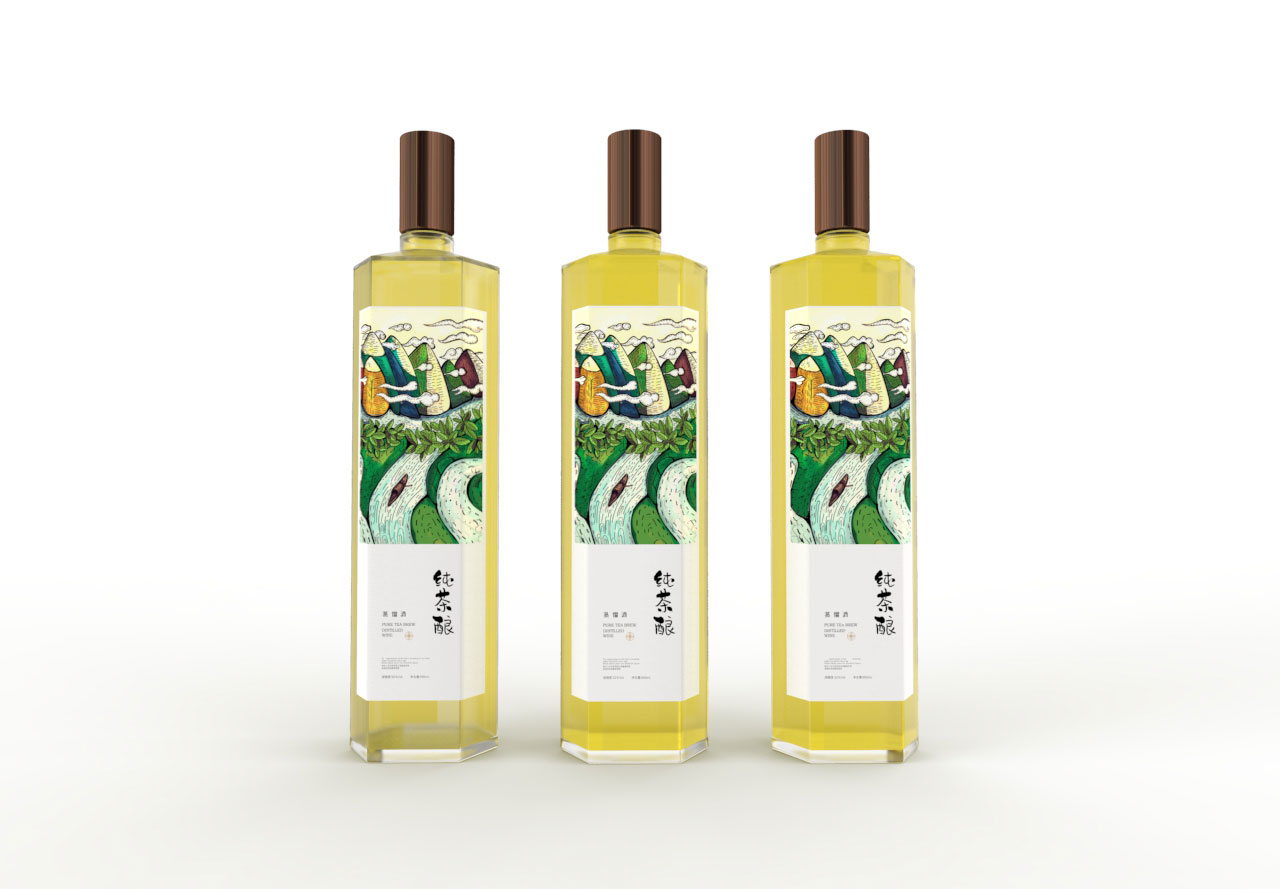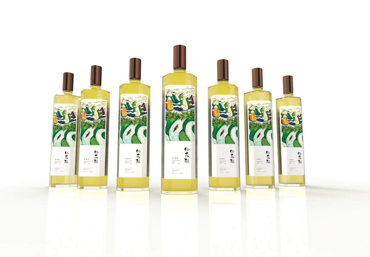 酒瓶轮廓:结合酒瓶的形状,传达出酒的特性,形成茶与酒的结合。