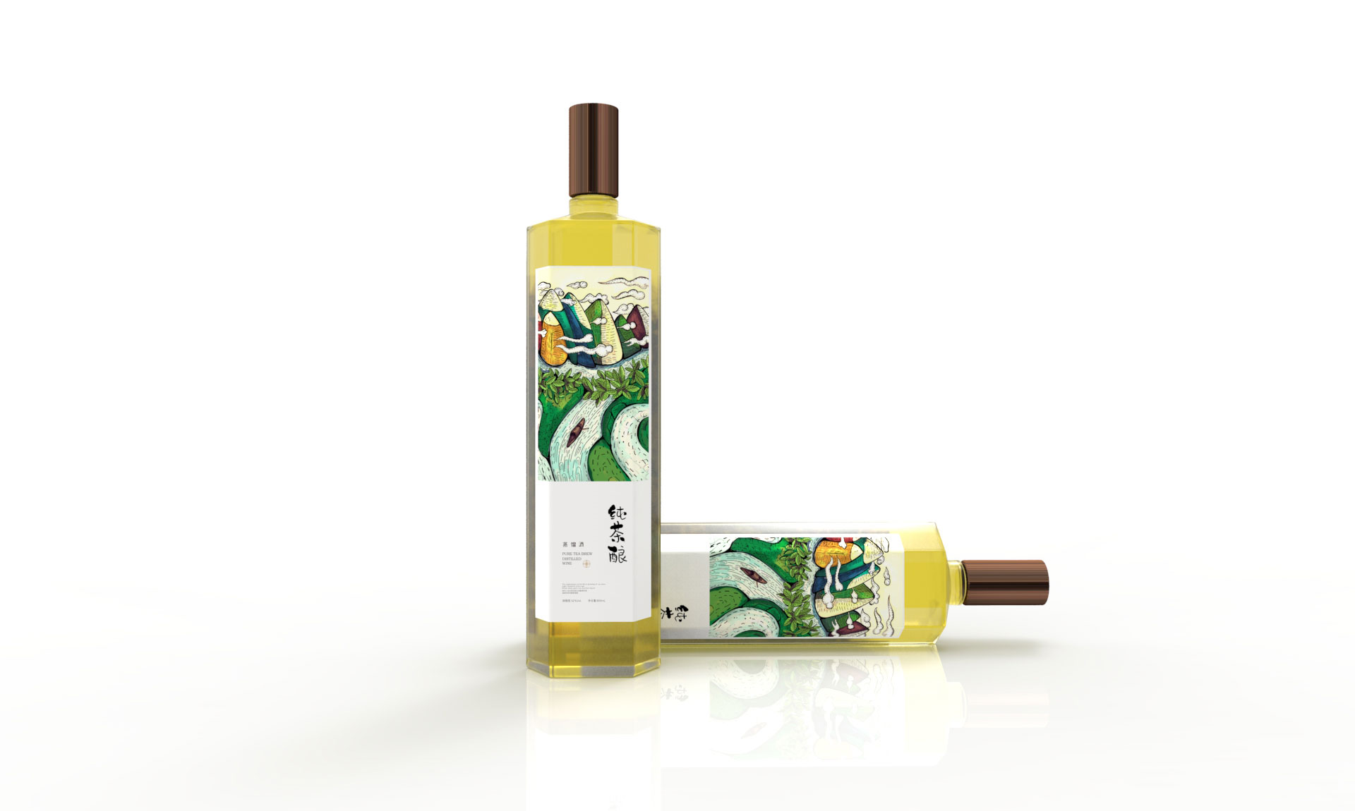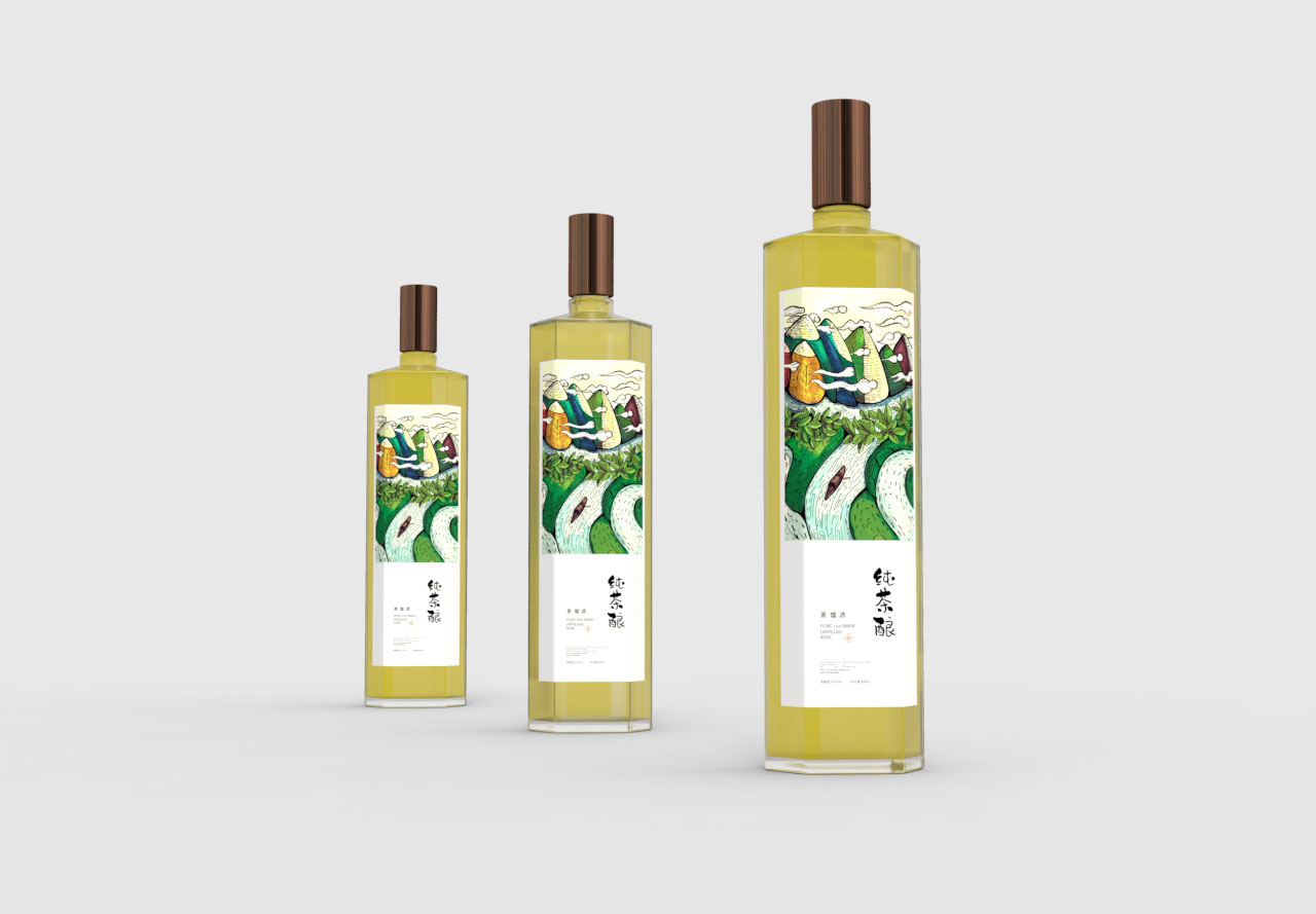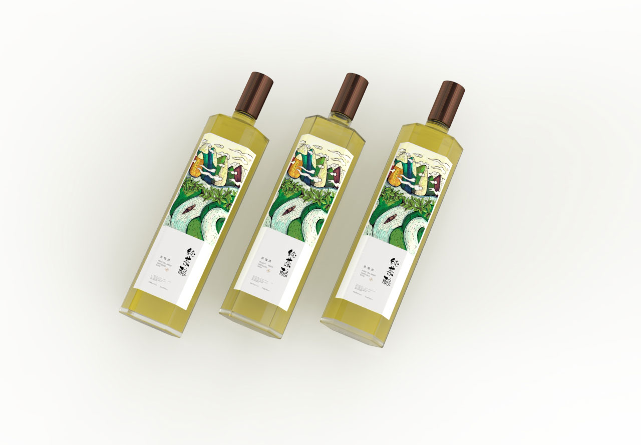 酒瓶轮廓:结合酒瓶的形状,传达出酒的特性,形成茶与酒的结合。
