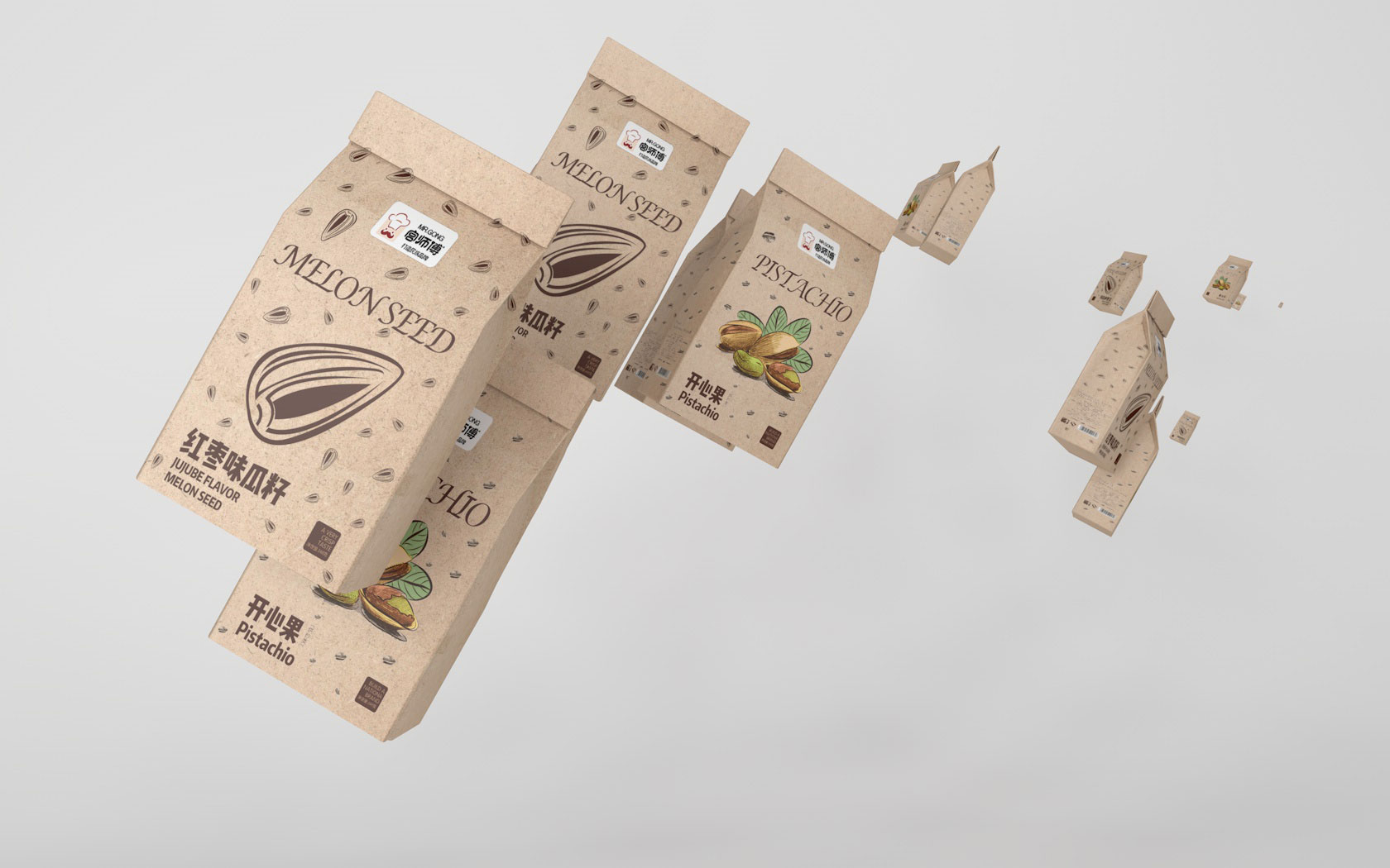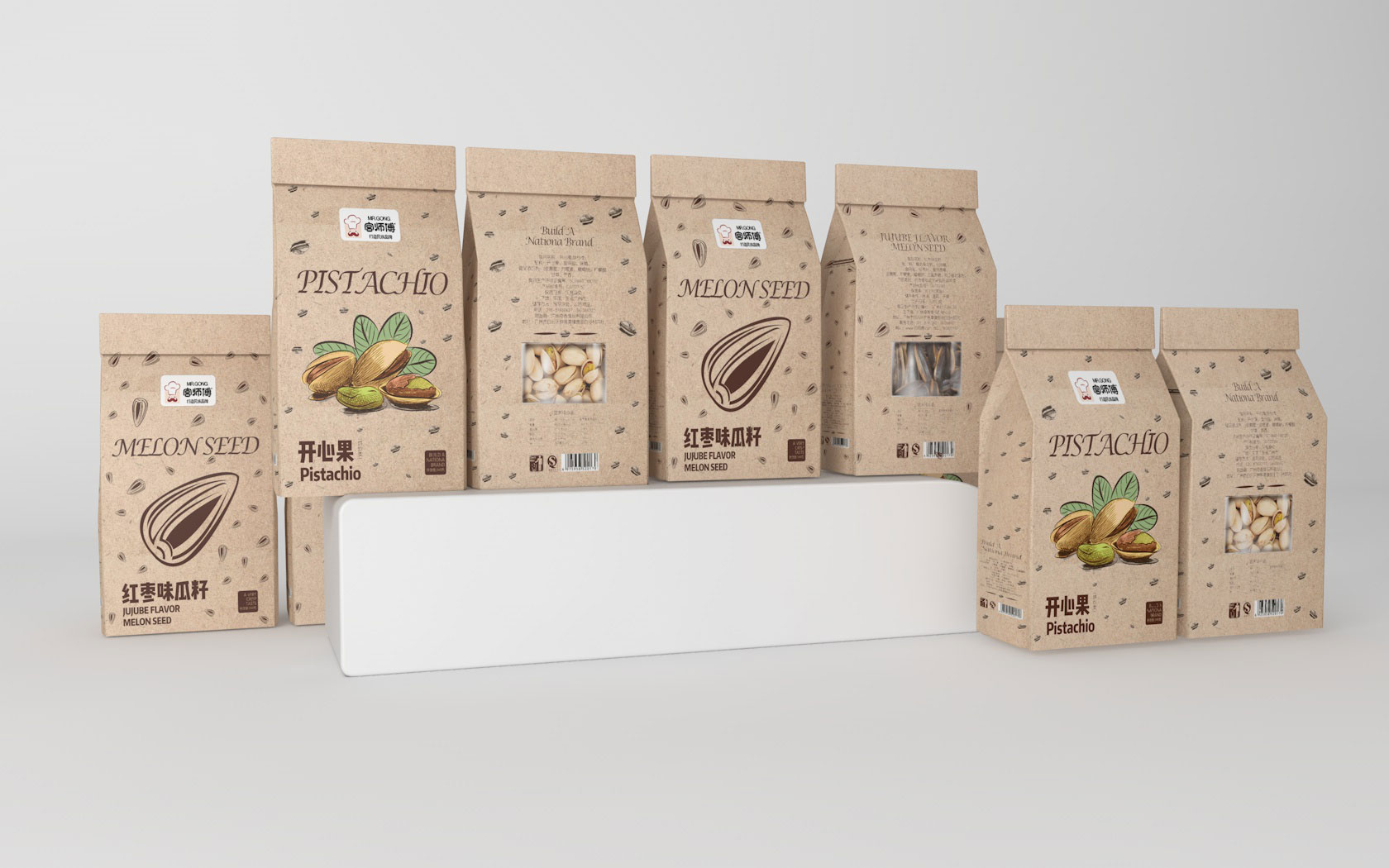 坚果图案:使用简洁的坚果图案,如杏仁、核桃、榛子等,增强识别性。
