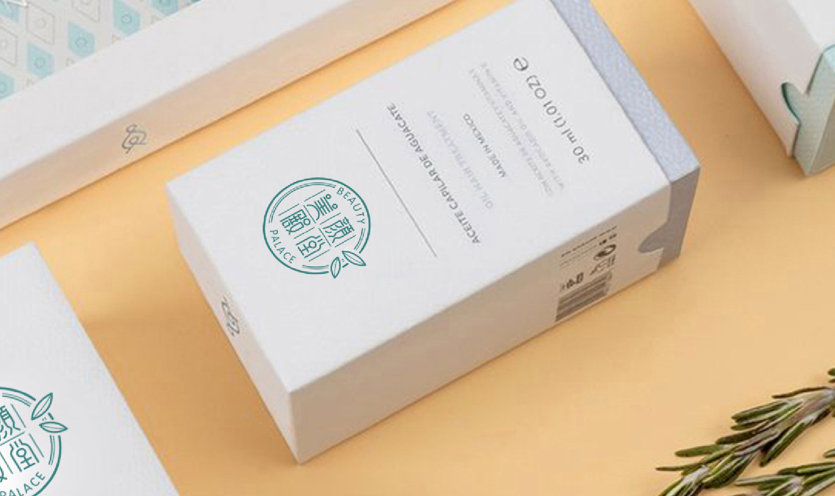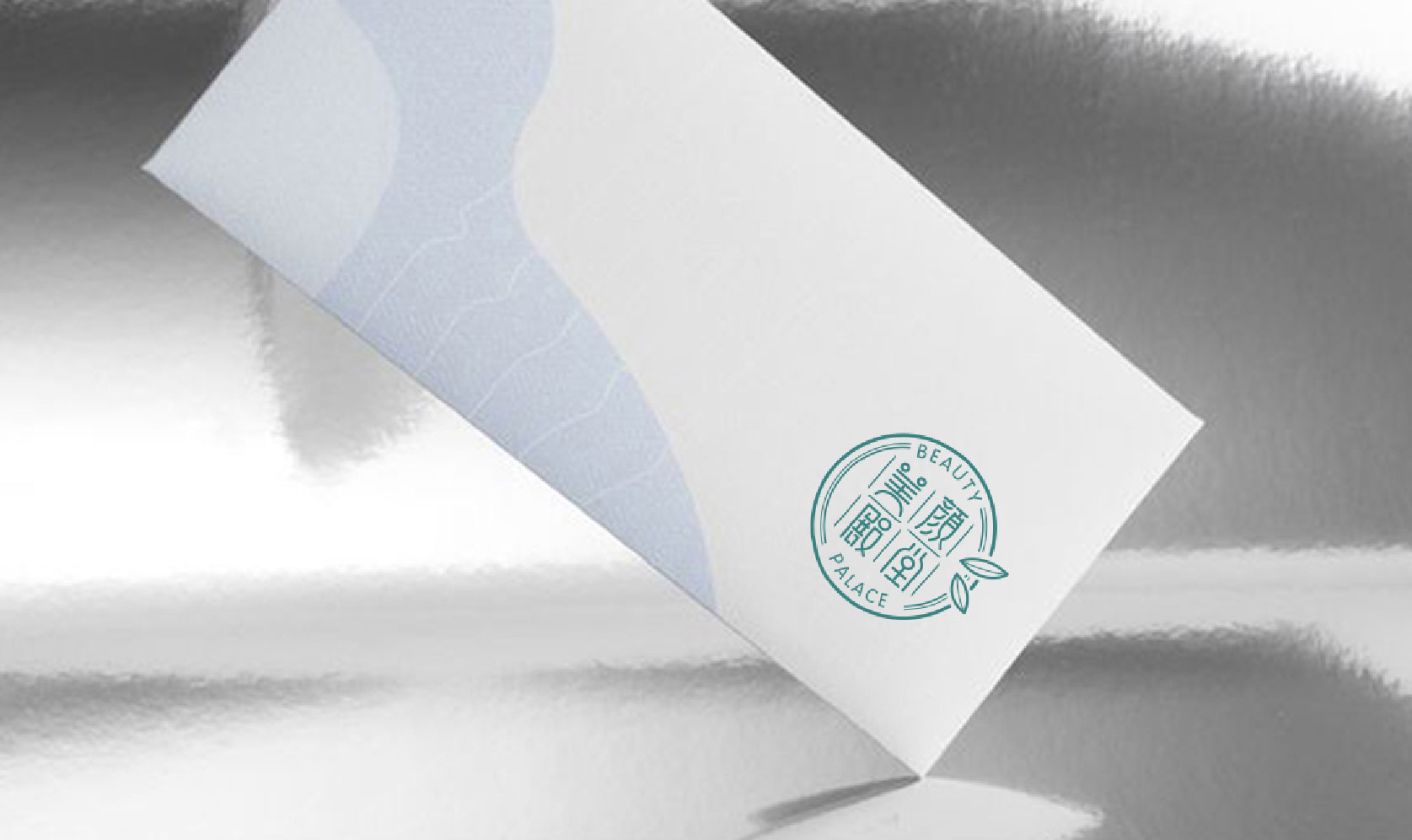 在殿堂图案中融入水滴或叶片的形状,强调护肤的滋润与天然。
