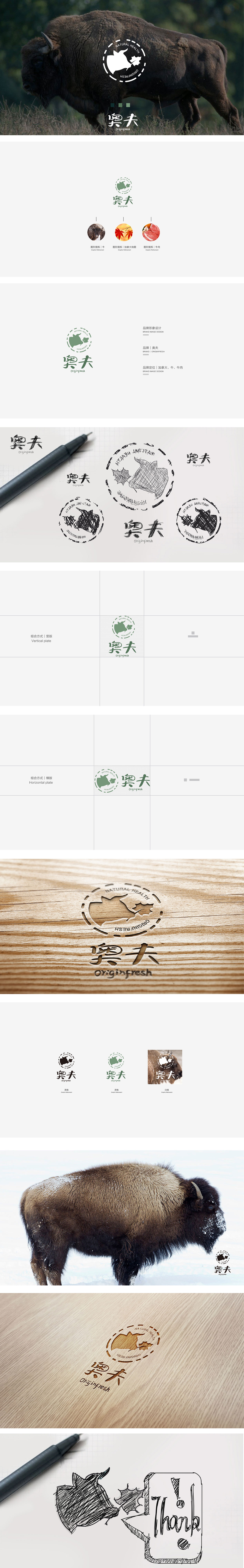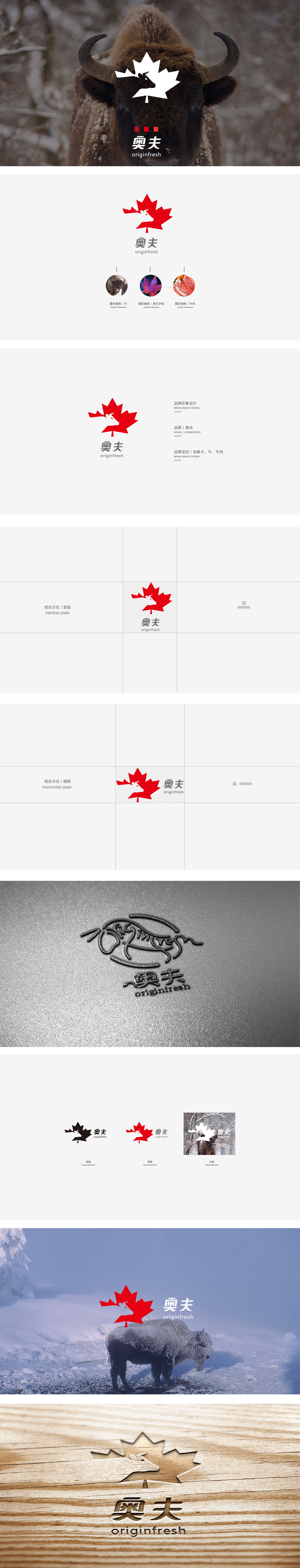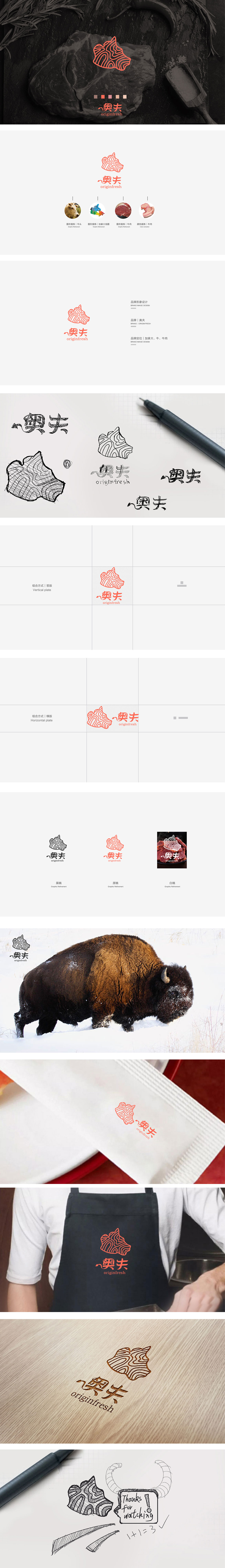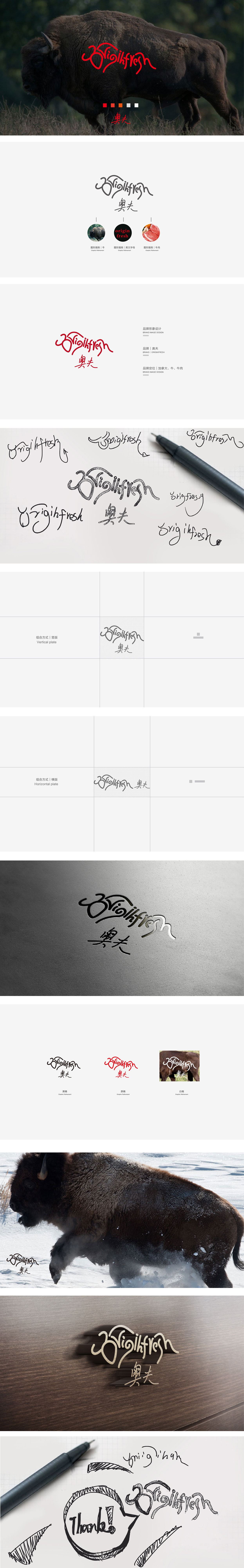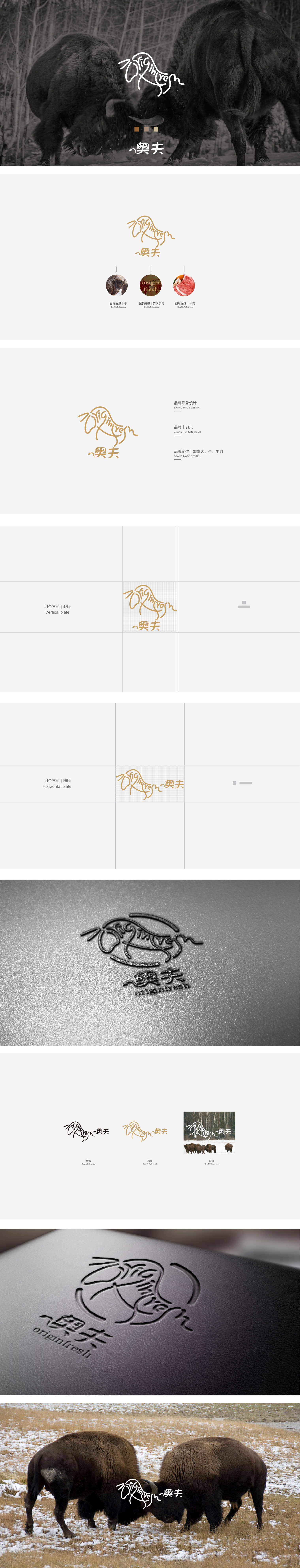 将牛头图案置于LOGO的中央或上方,品牌名称“奥夫牛肉”放置在下方。
