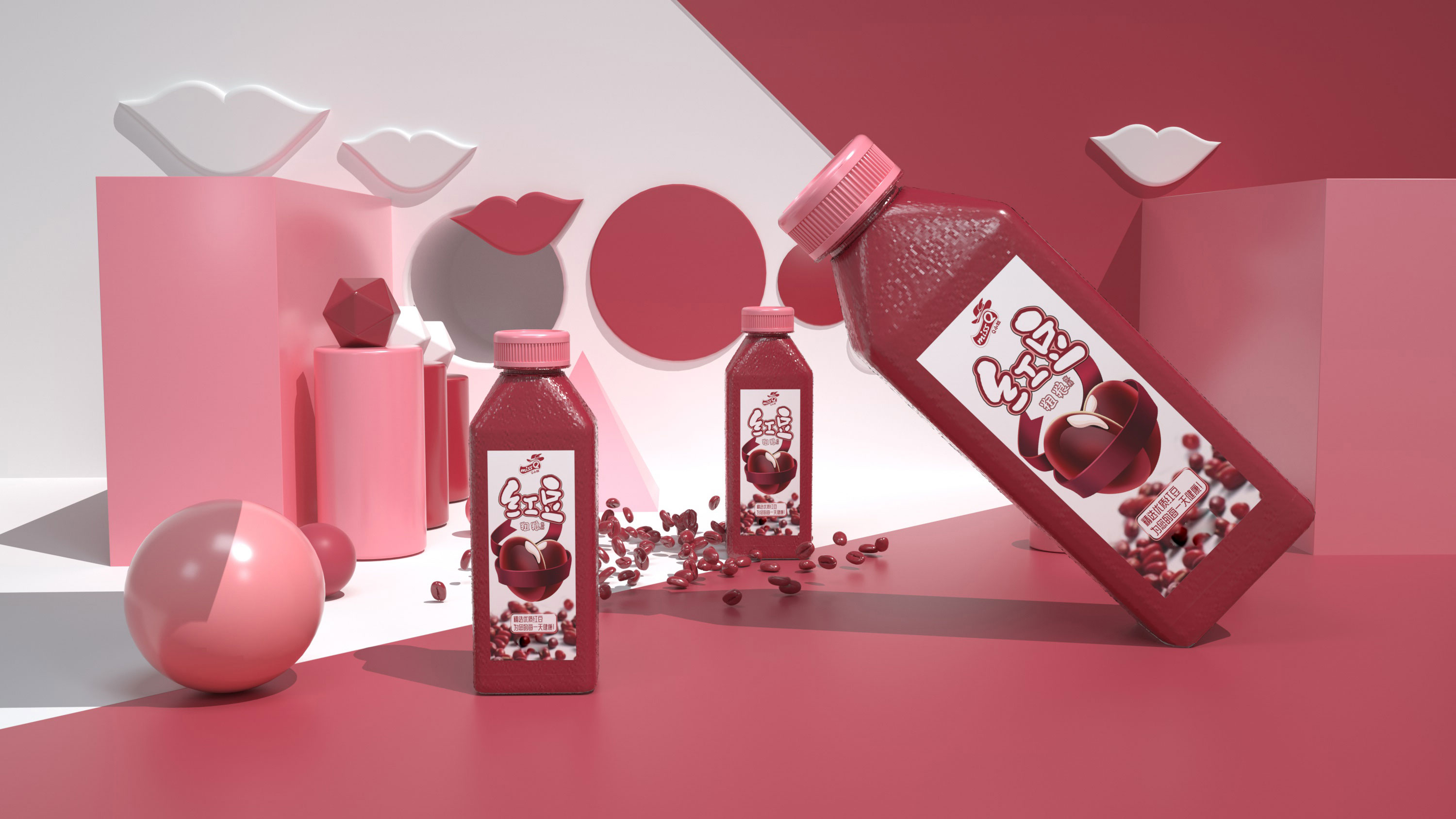 红豆汁:使用温暖的红色和米色,传达甜美和健康的感觉。