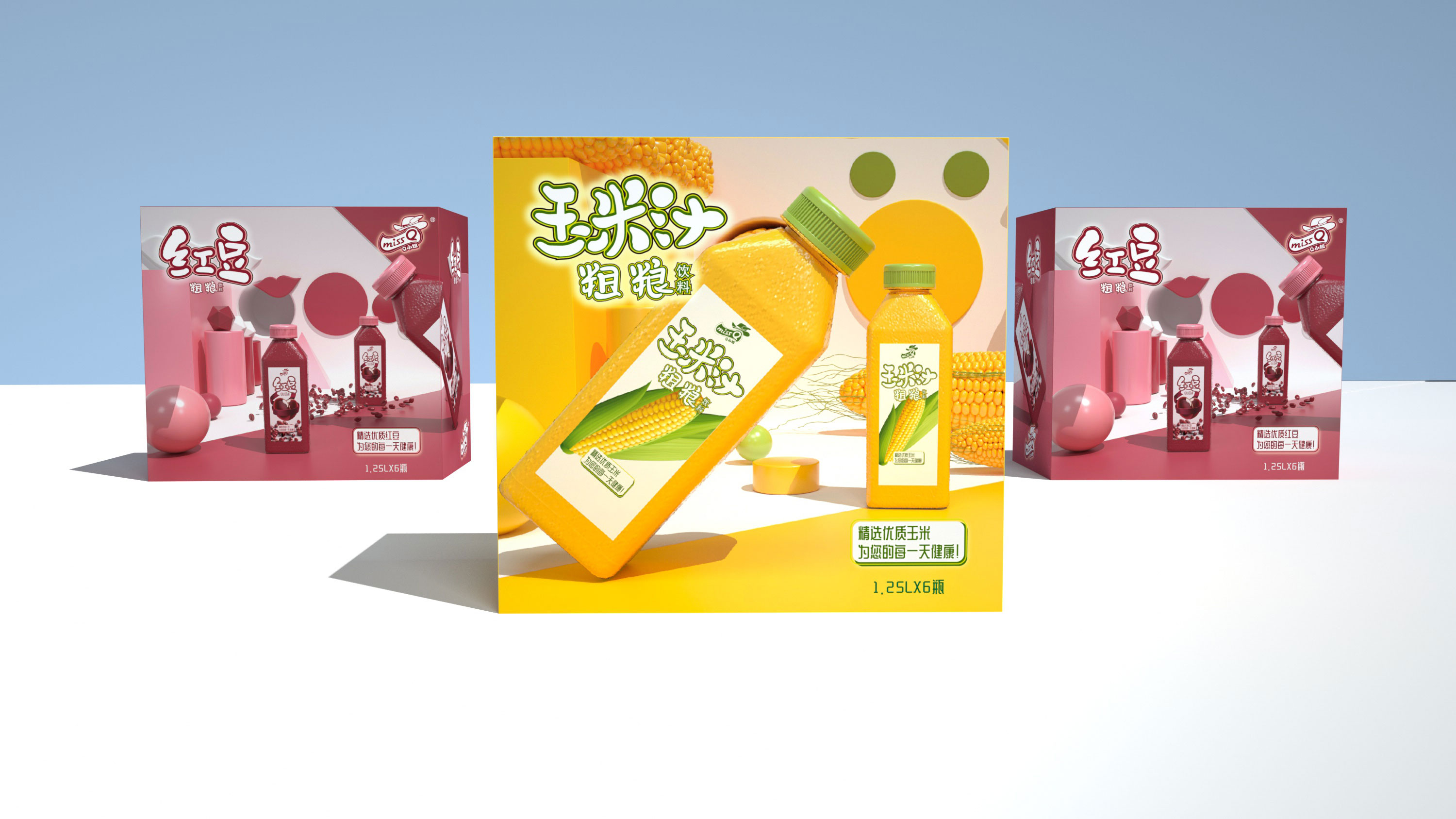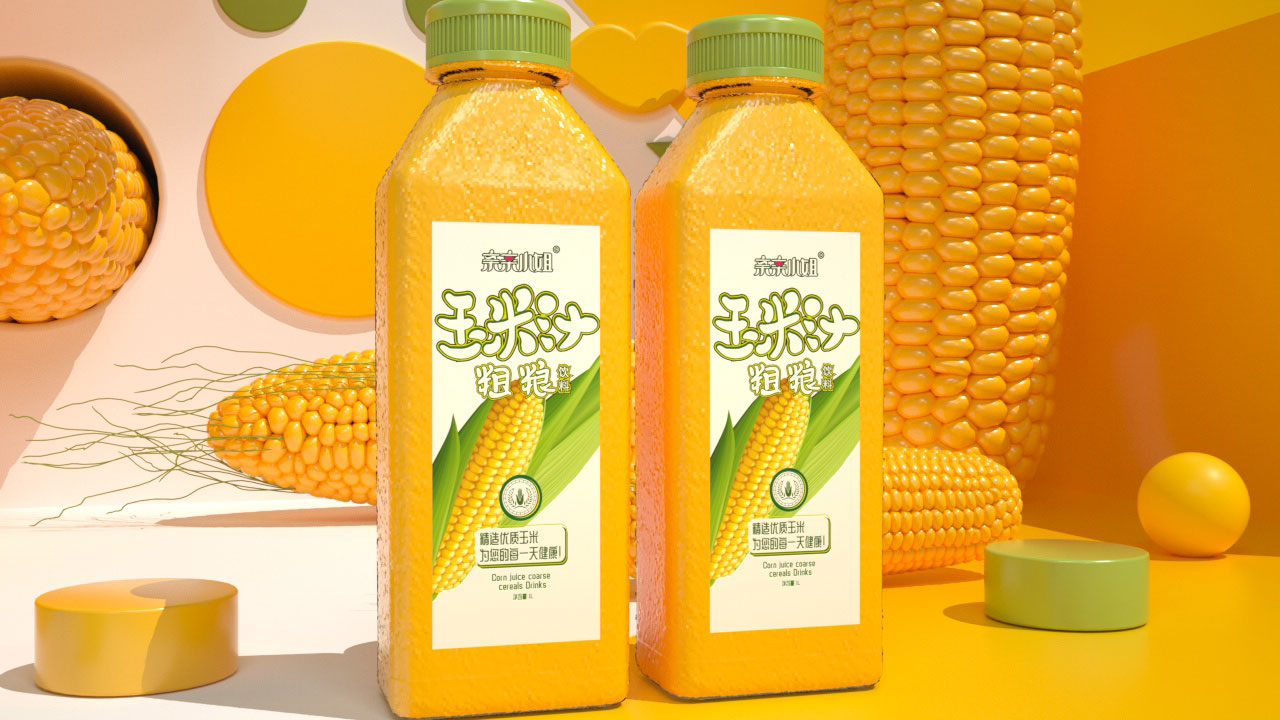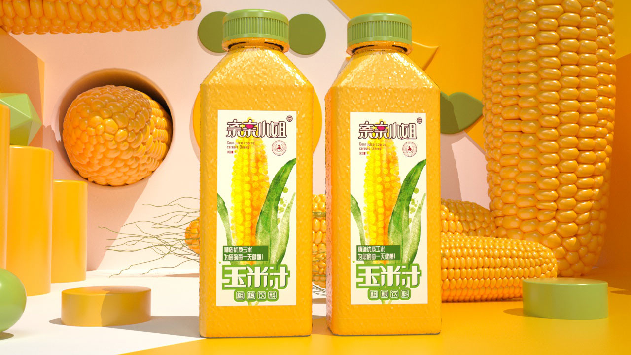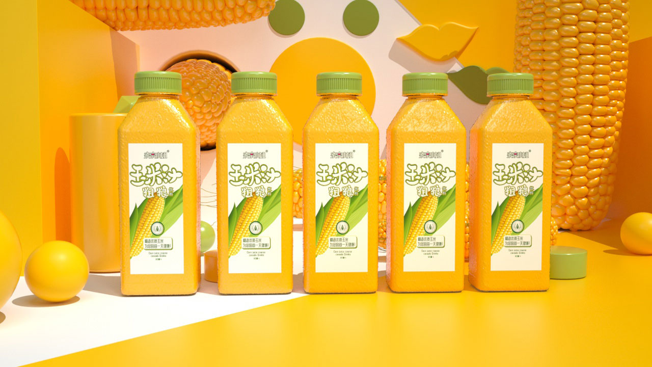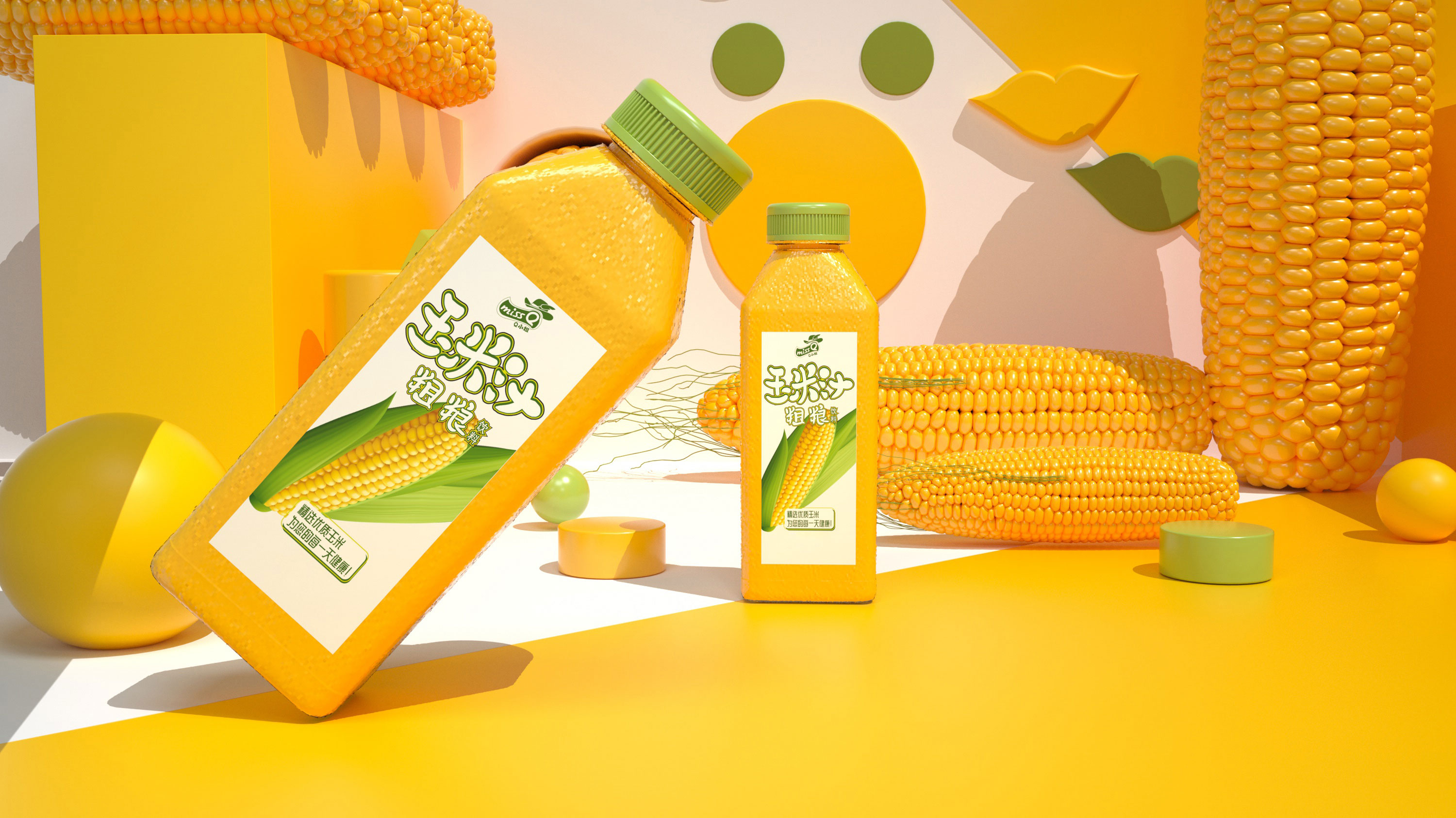 玉米汁:采用明亮的金黄色和绿色,体现新鲜与自然。