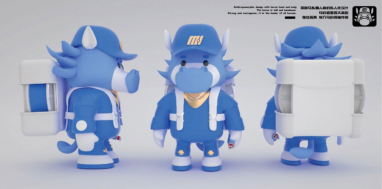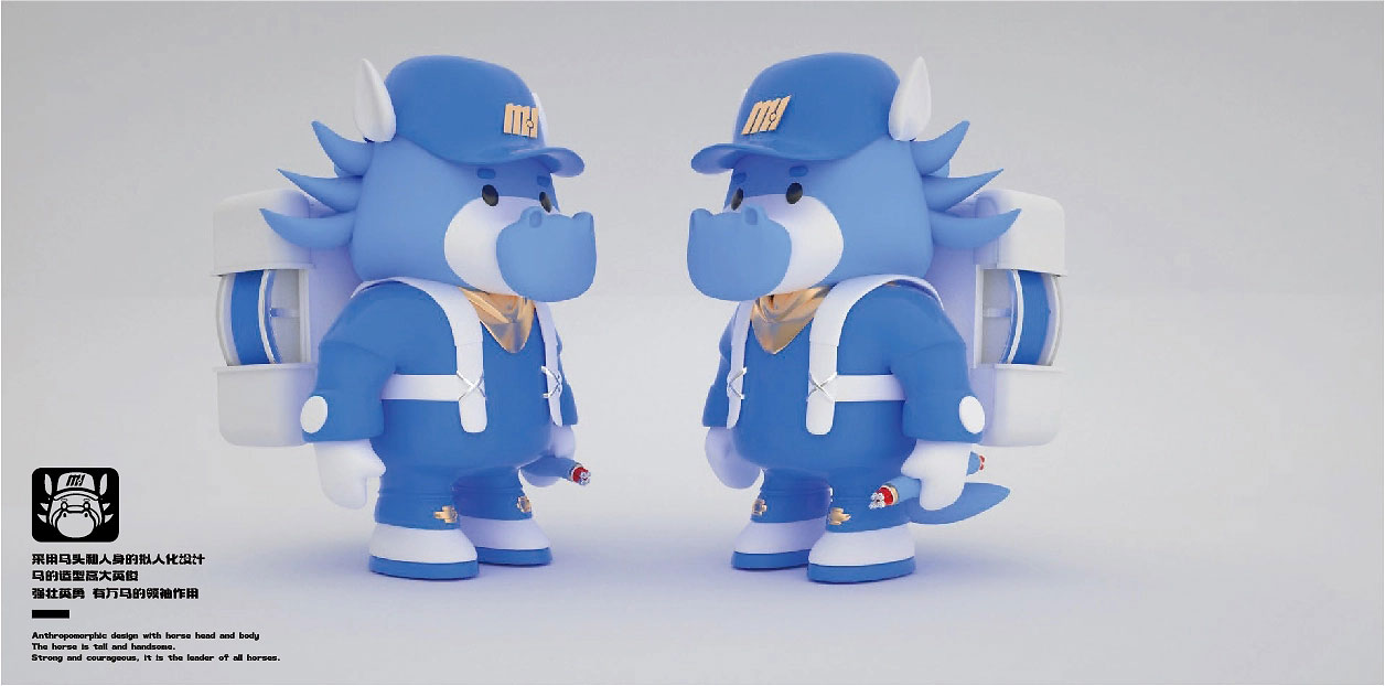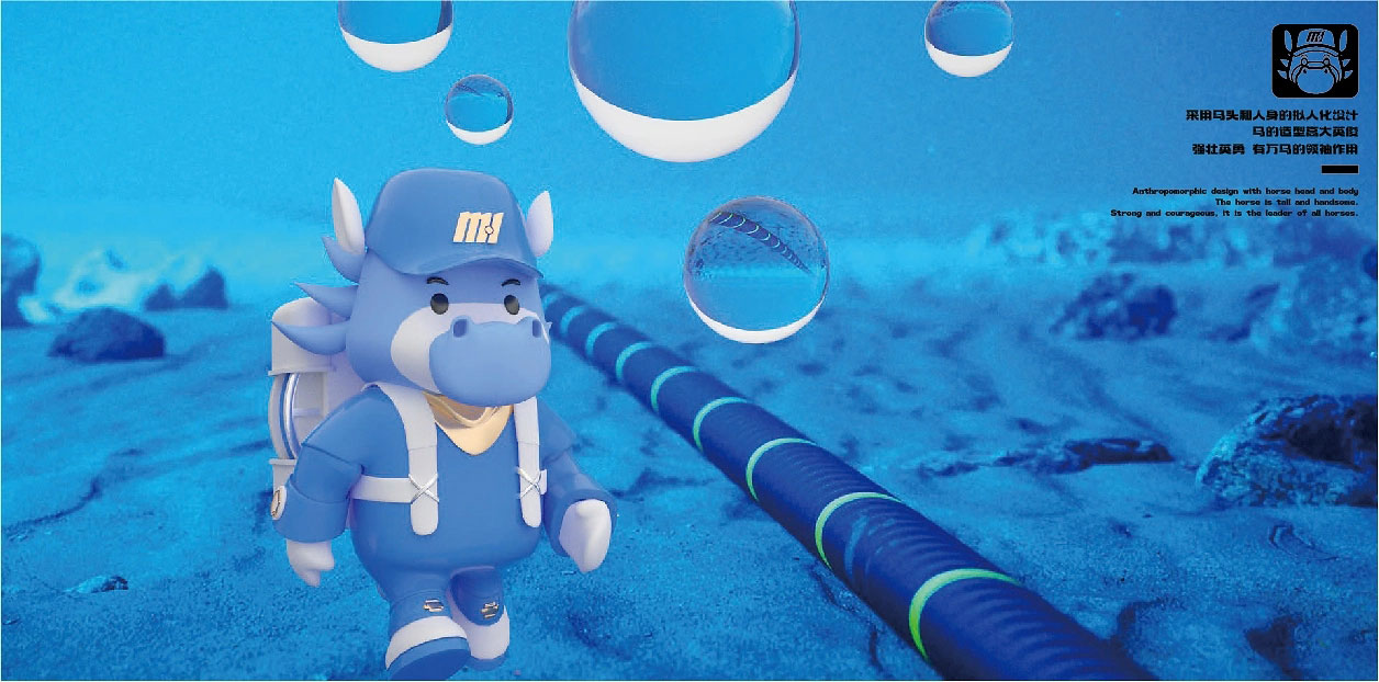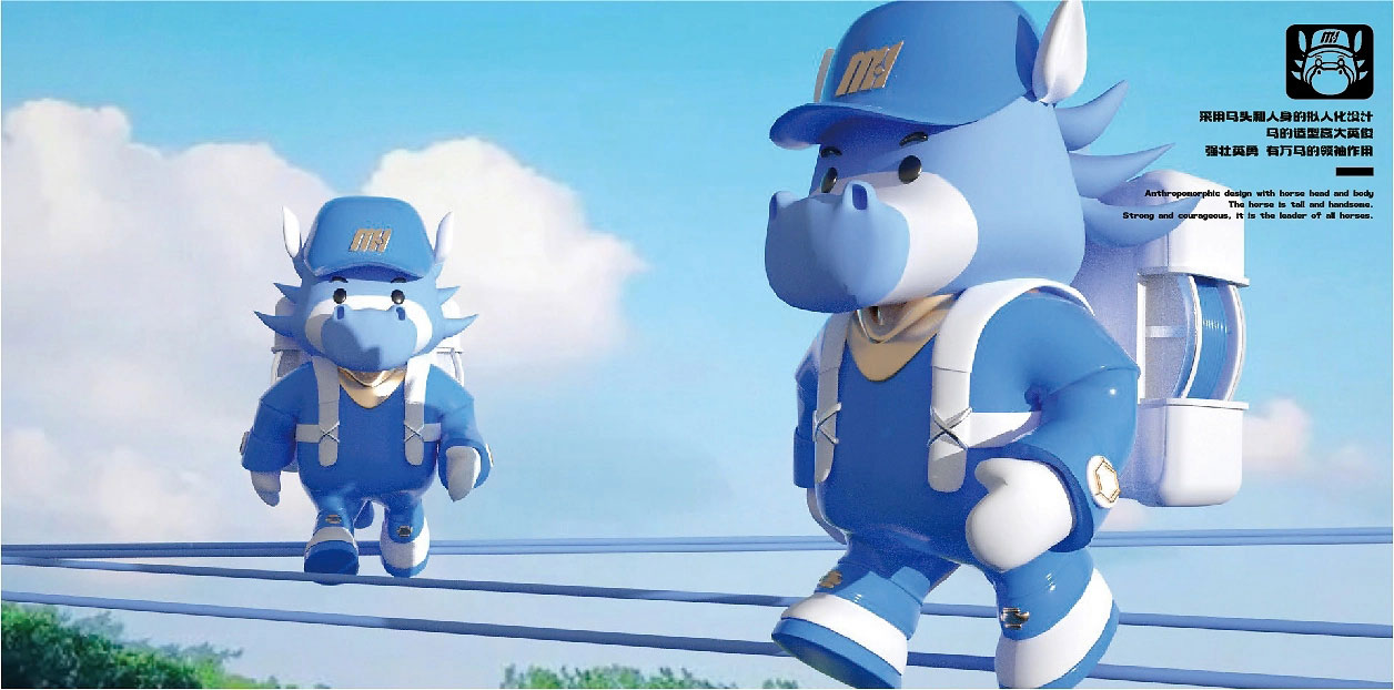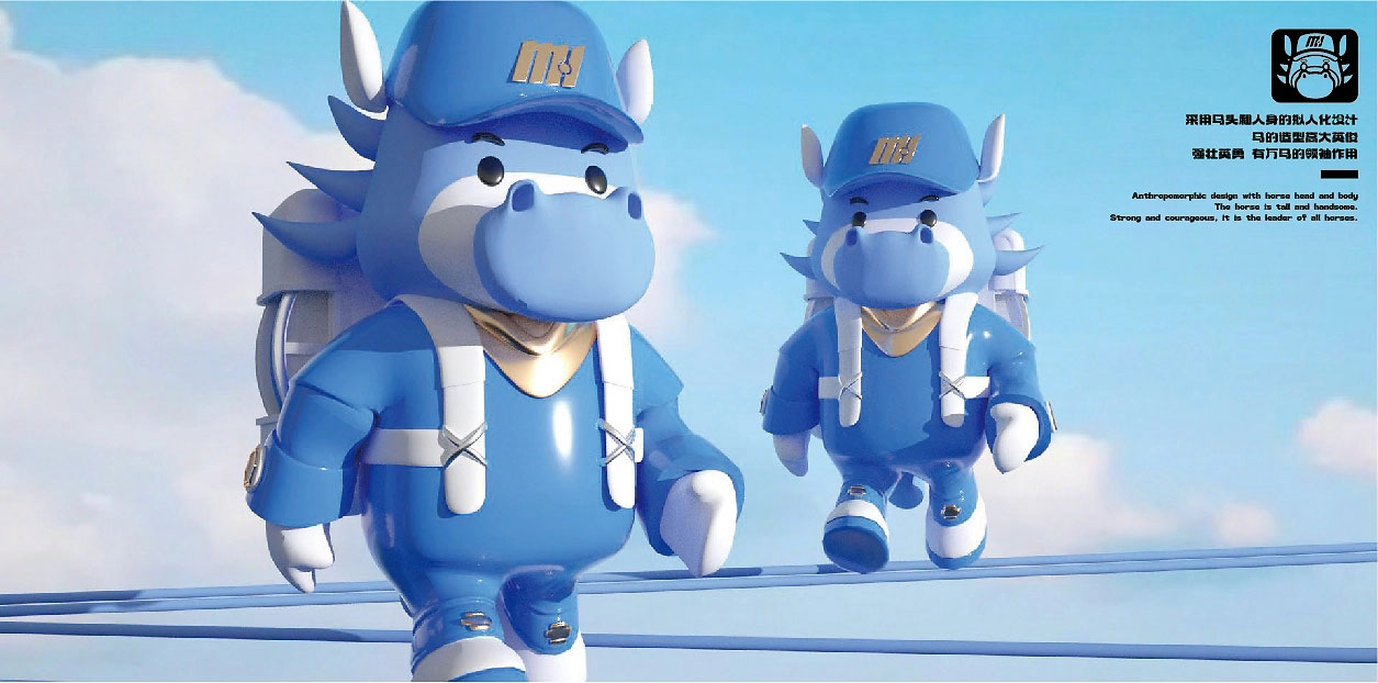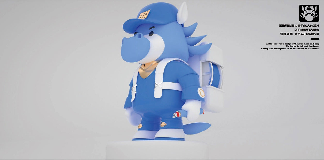形象特征:万小马是一只活泼可爱的马,体现出活力、智慧和友善的性格。