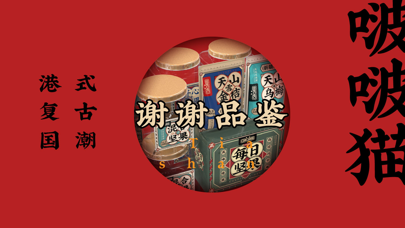 主元素:以可爱的猫咪形象为核心,结合坚果的元素,例如在猫咪的爪子中夹着坚果,或者猫咪的尾巴呈现出坚果的轮廓。