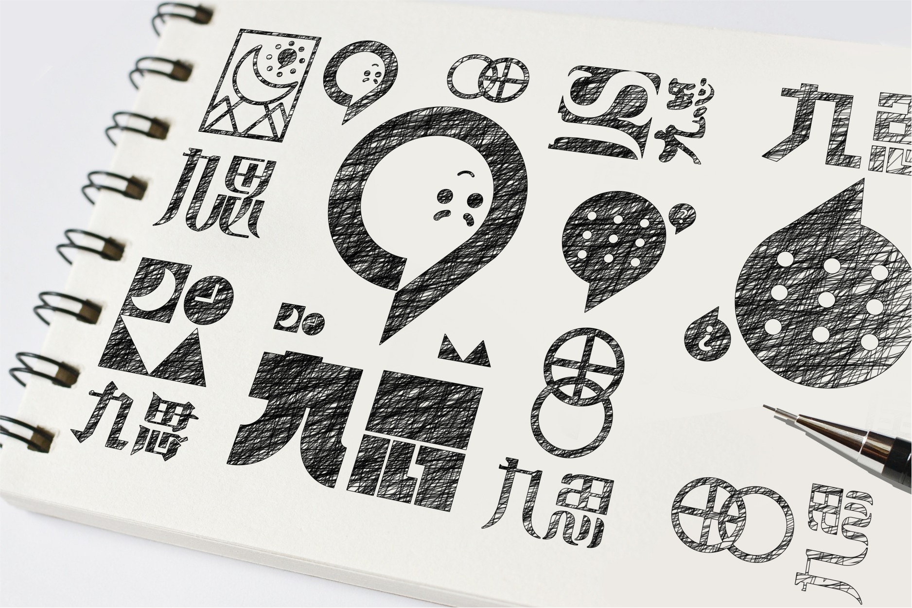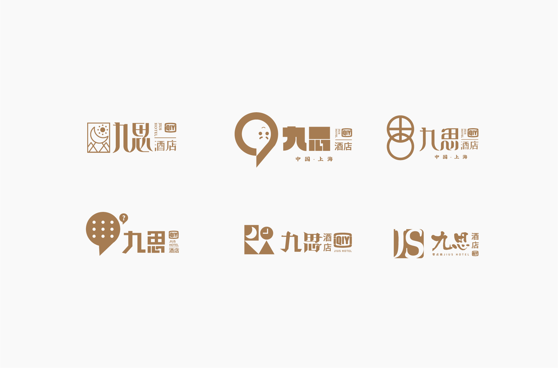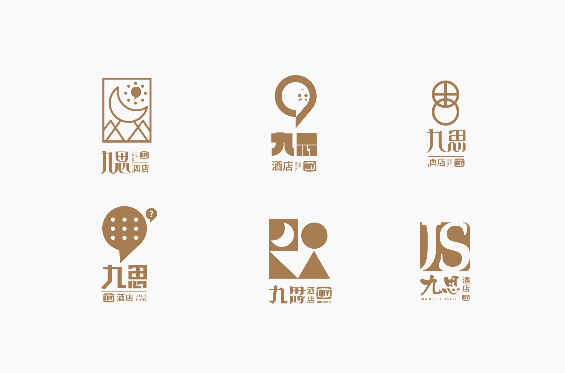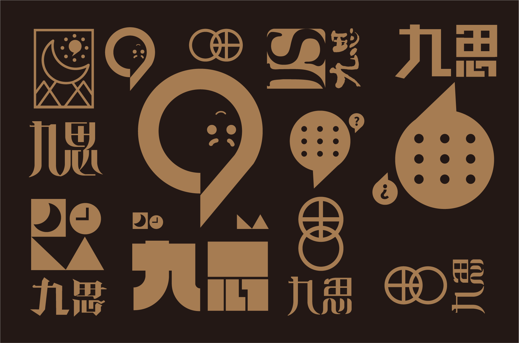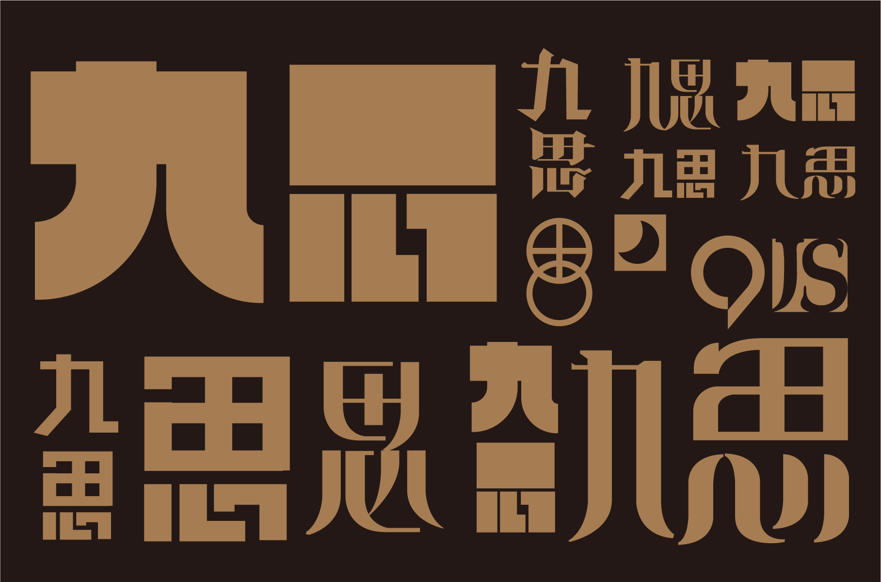 结合“九思”二字,探索不同的书法或字体风格,展现酒店的文化底蕴。