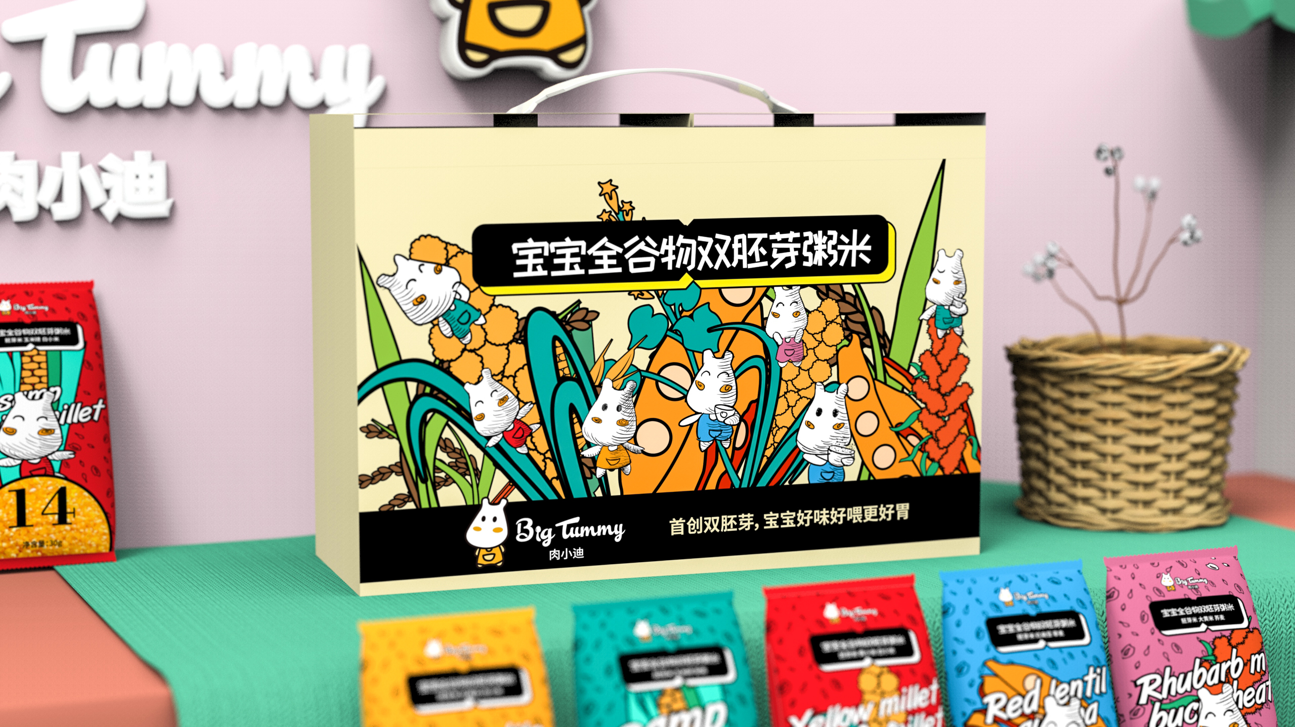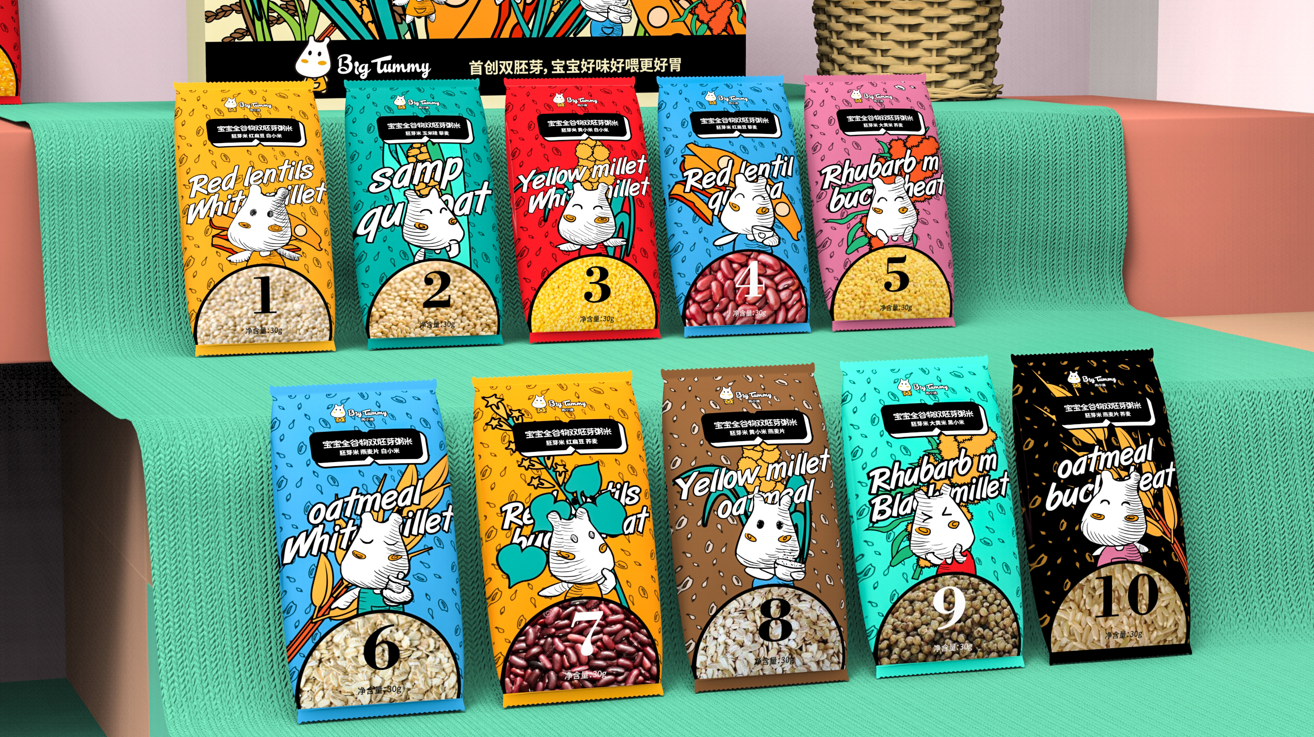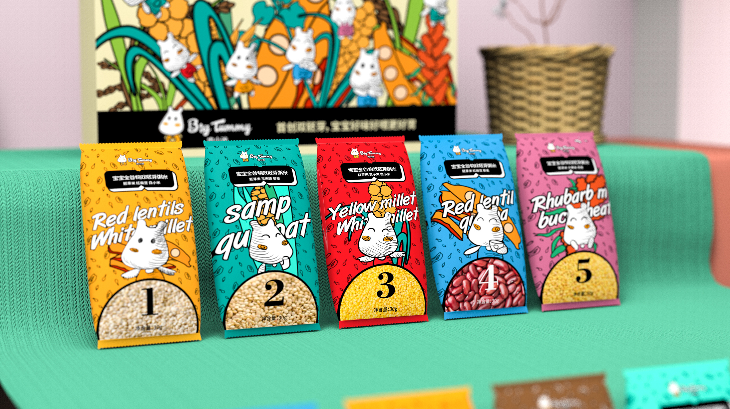 宝宝米可以设计成小型纸盒,方便取用,并且易于叠放。