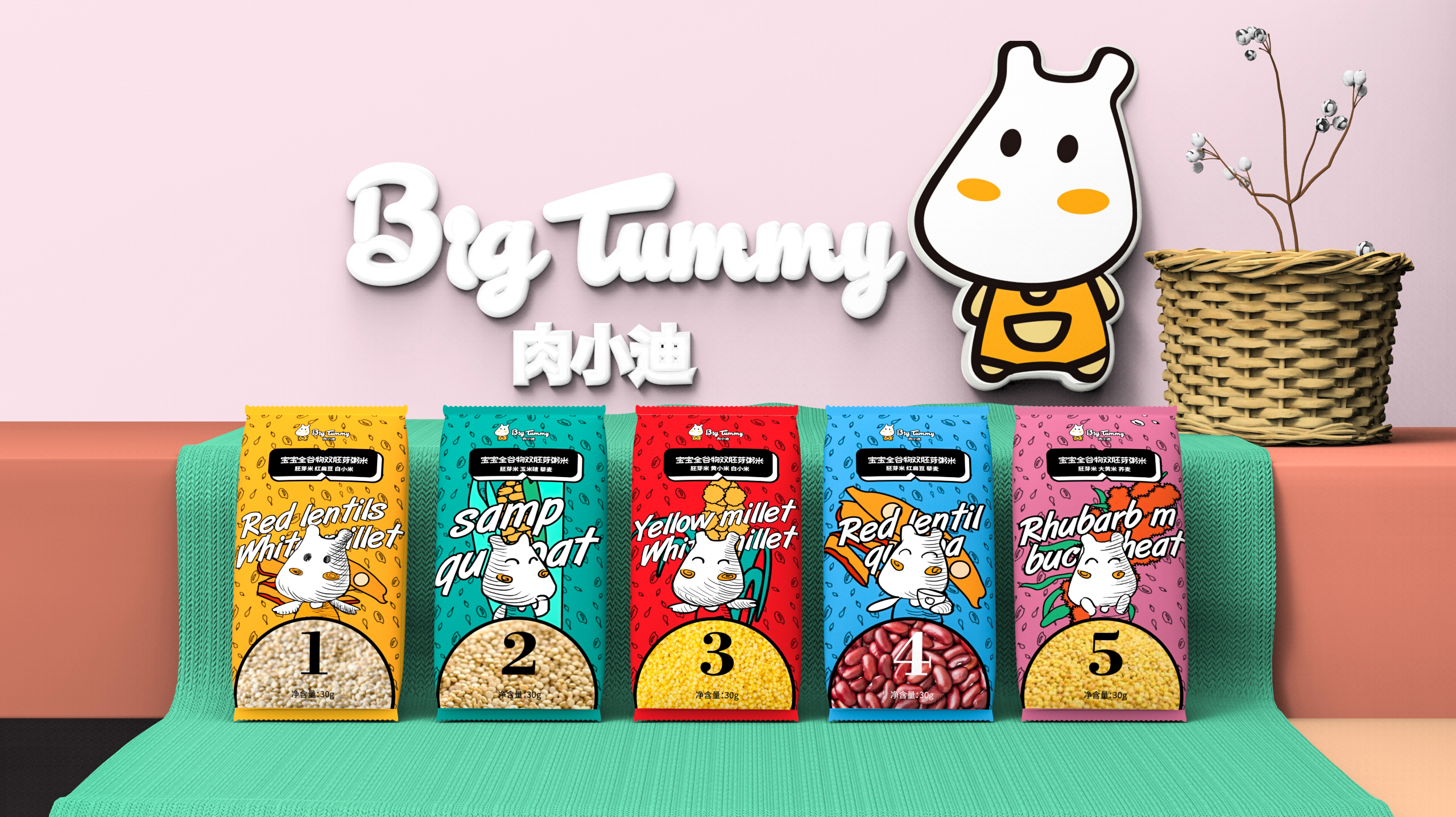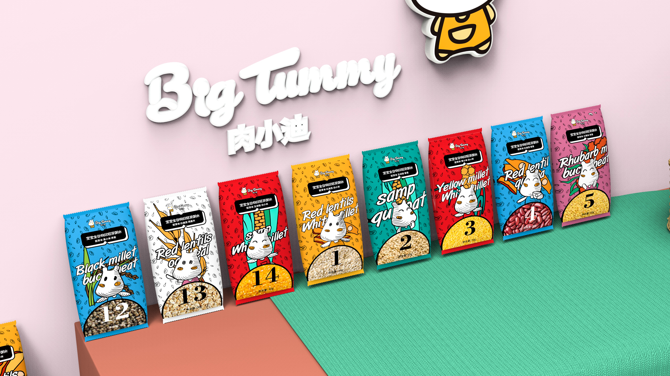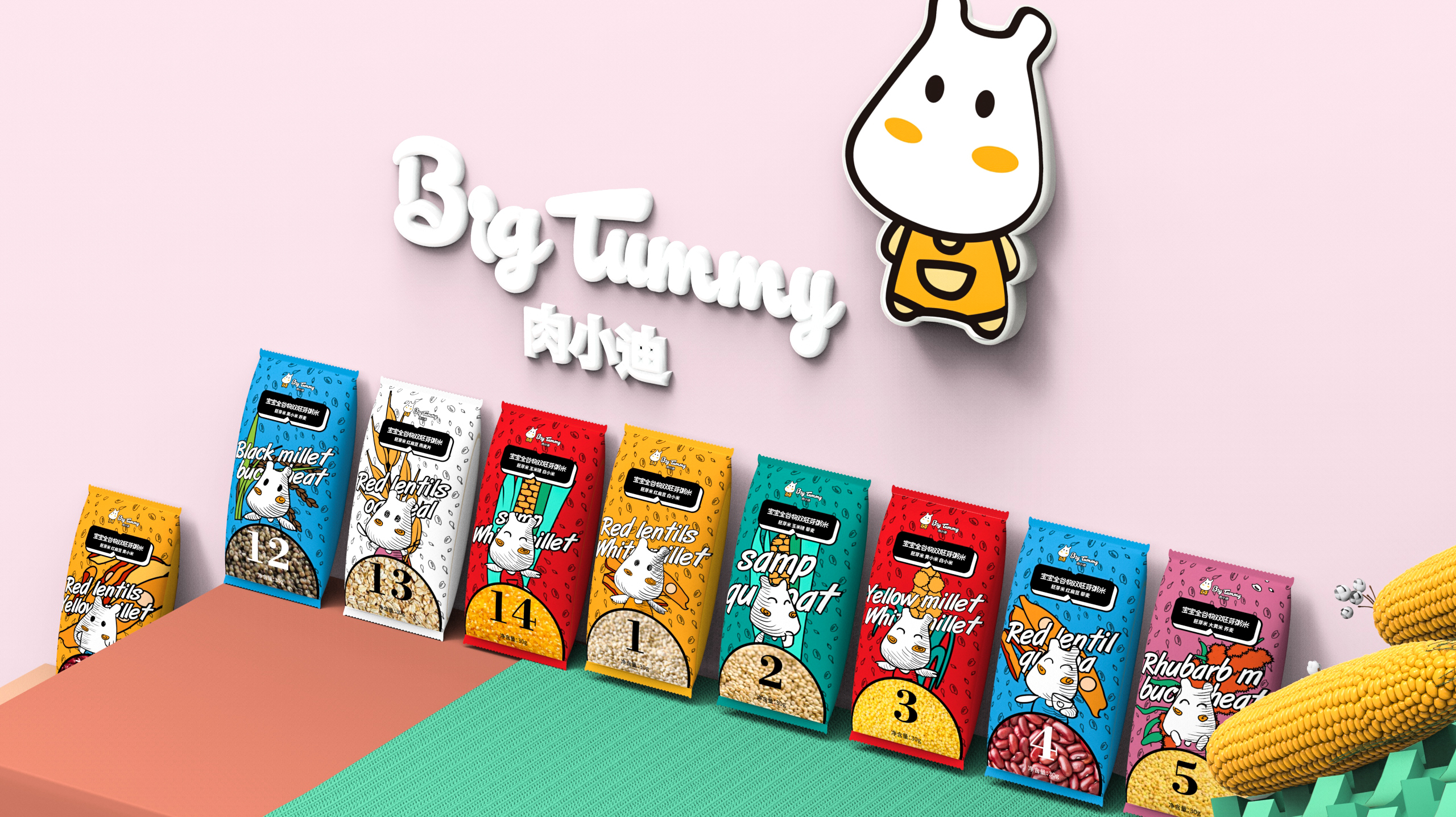 宝宝米可以设计成小型纸盒,方便取用,并且易于叠放。