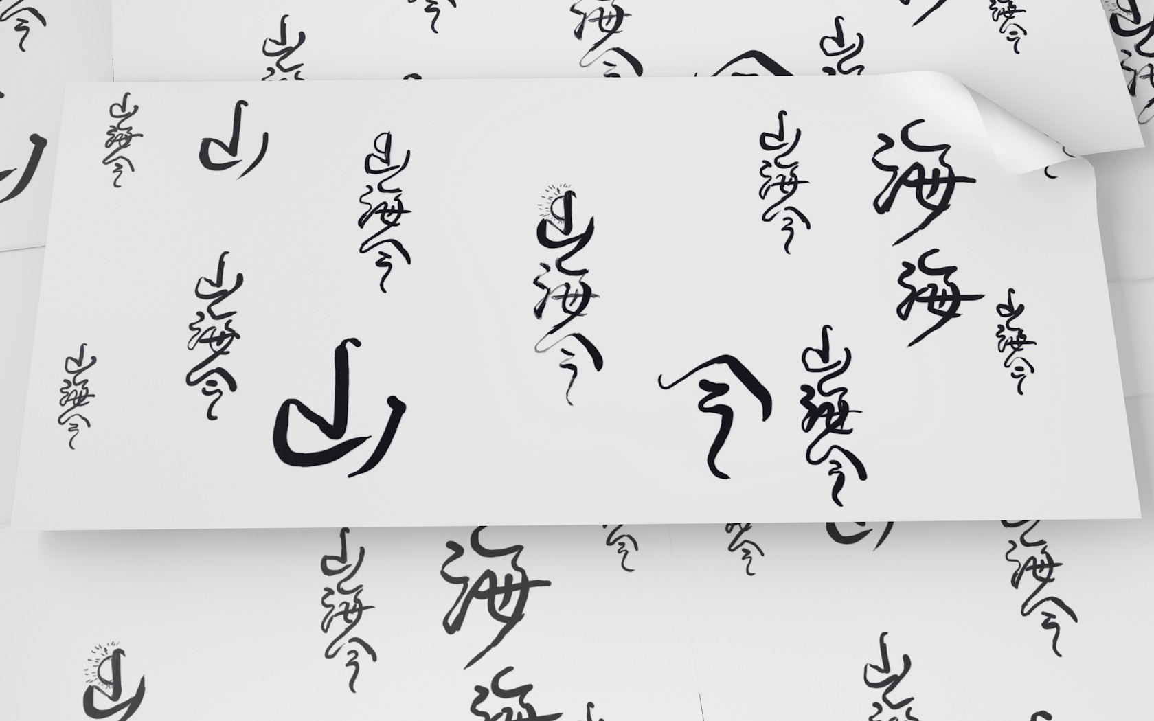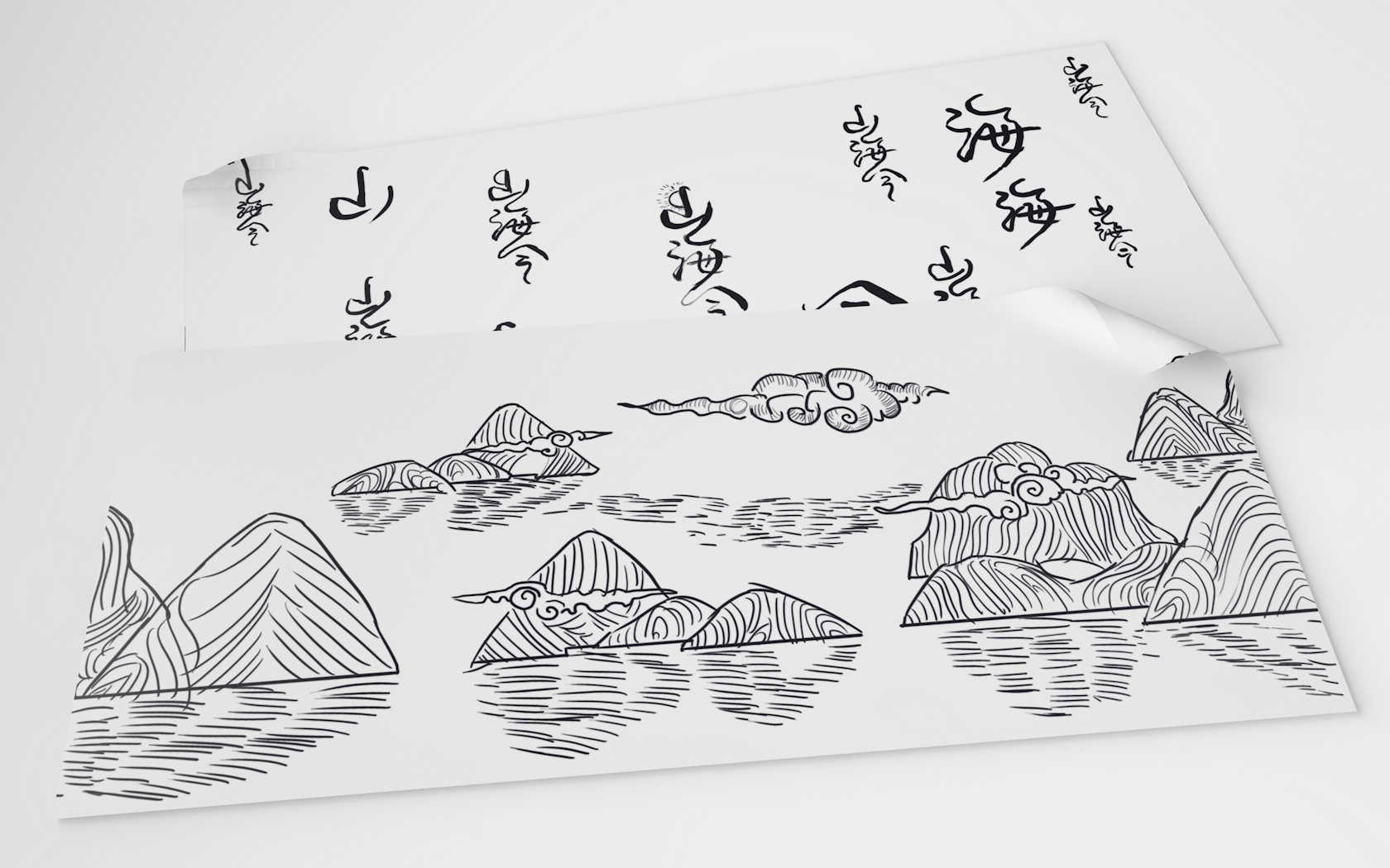 品牌名称“山海今”可以用较大的字体,突出品牌印象,其他文字信息可以用较小的字号,使整体布局协调。