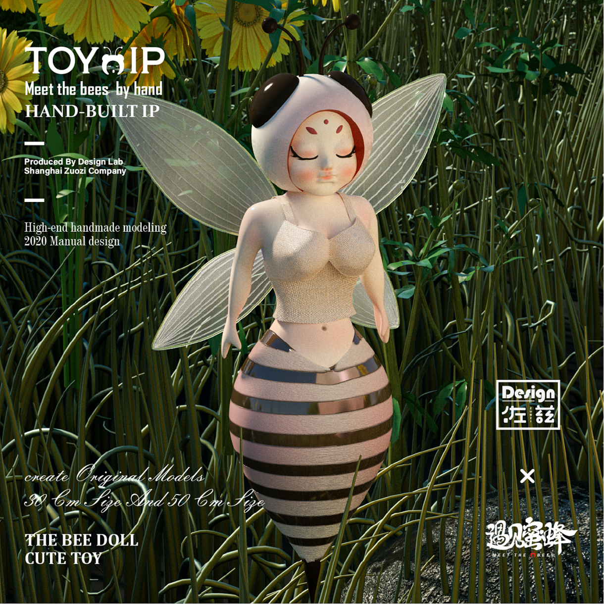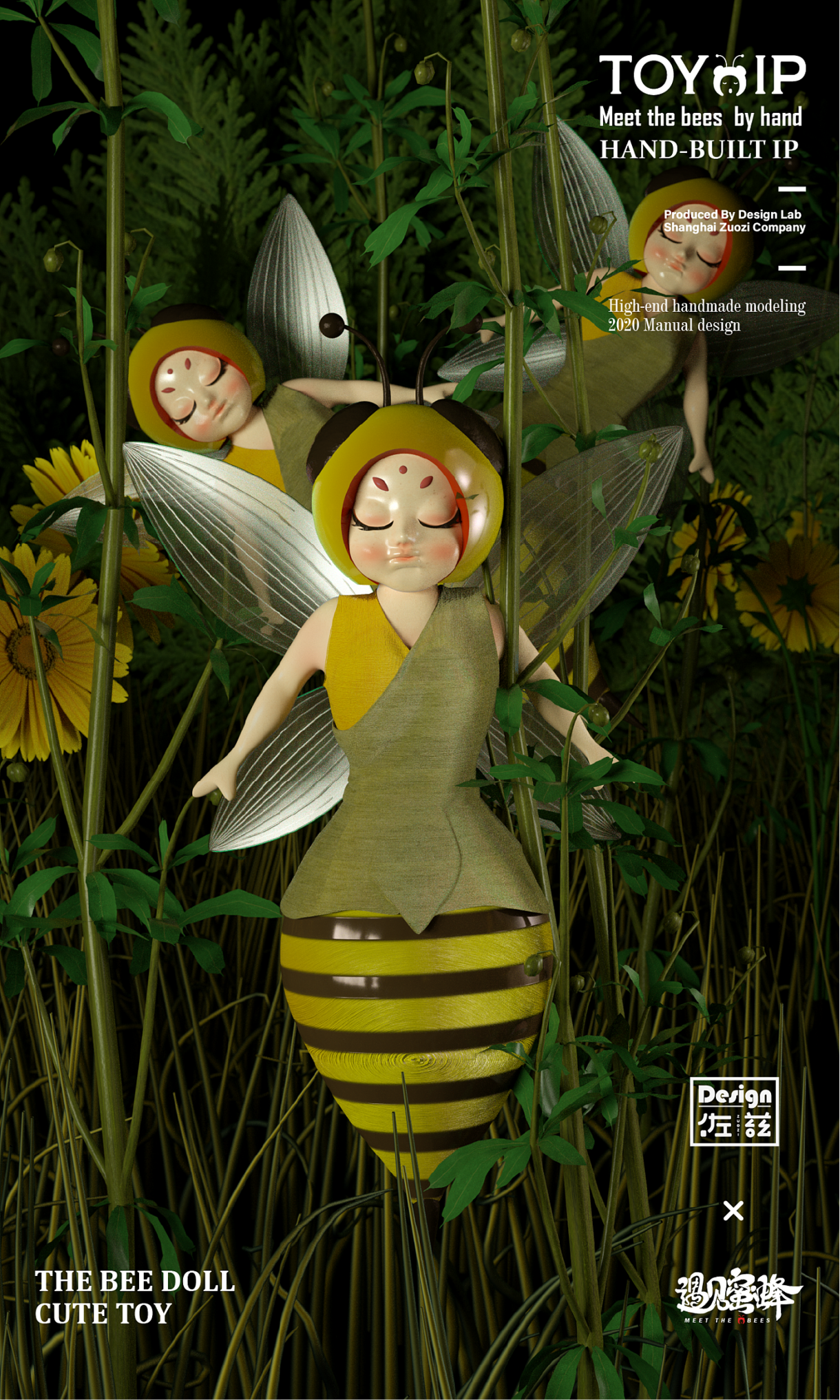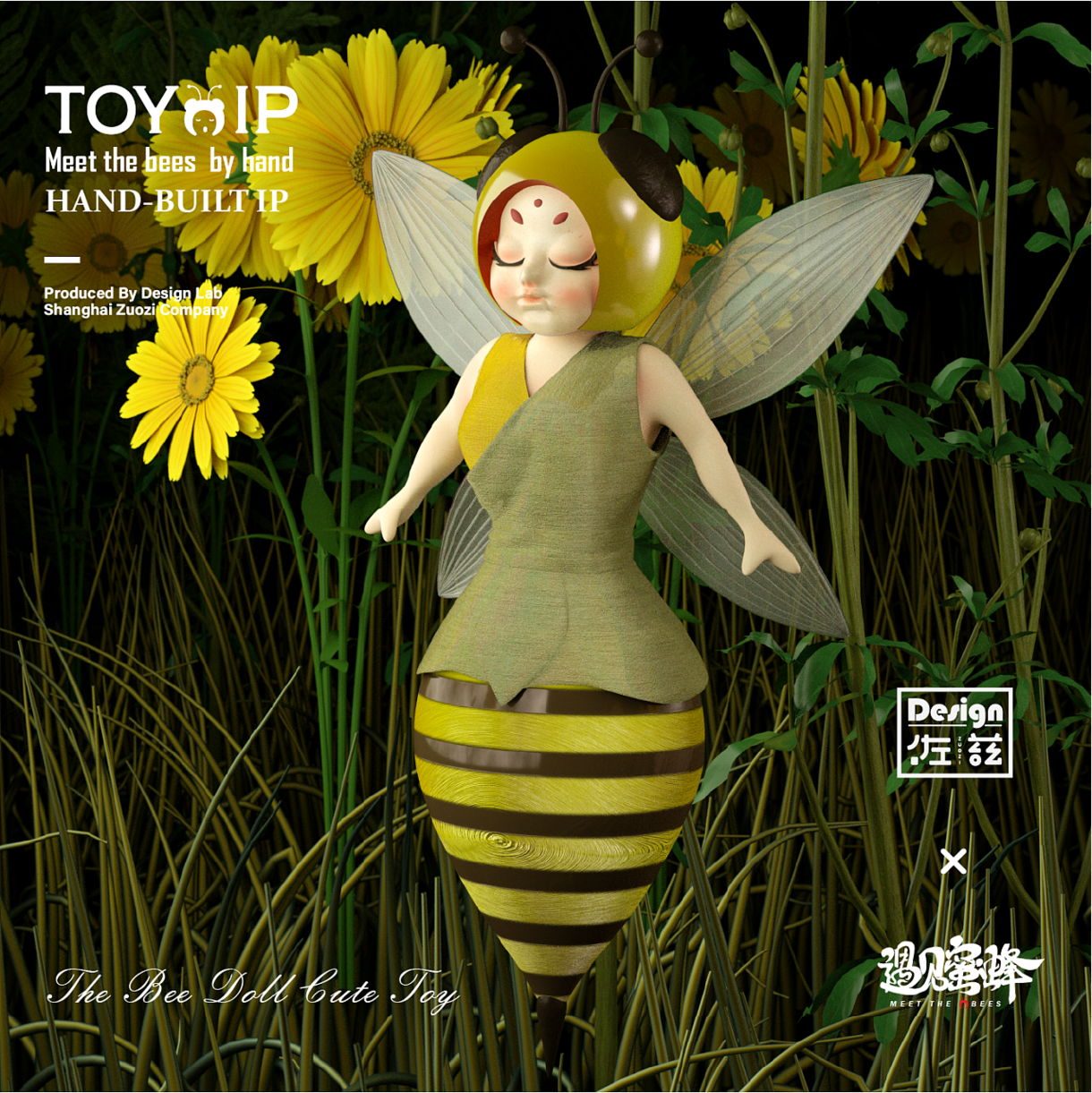蜜蜂(遇见蜜蜂):蜜蜂是人类的好朋友,能够进行授粉,对地球生态环境至关重要。手办设计以深受人们喜爱的蜜蜂为参考,进行拟人化的设计。突出蜜蜂的黄色黑条纹身体和翅膀的细节,表现出活泼可爱的形象。
