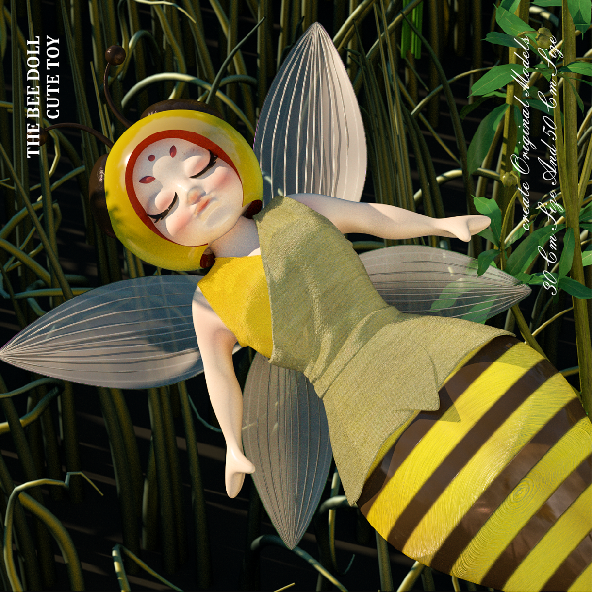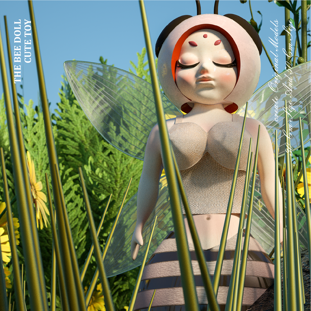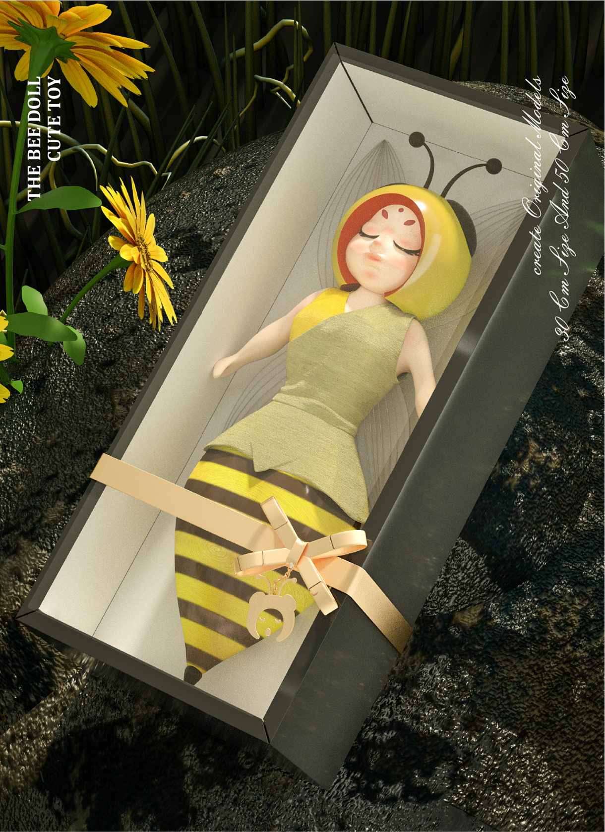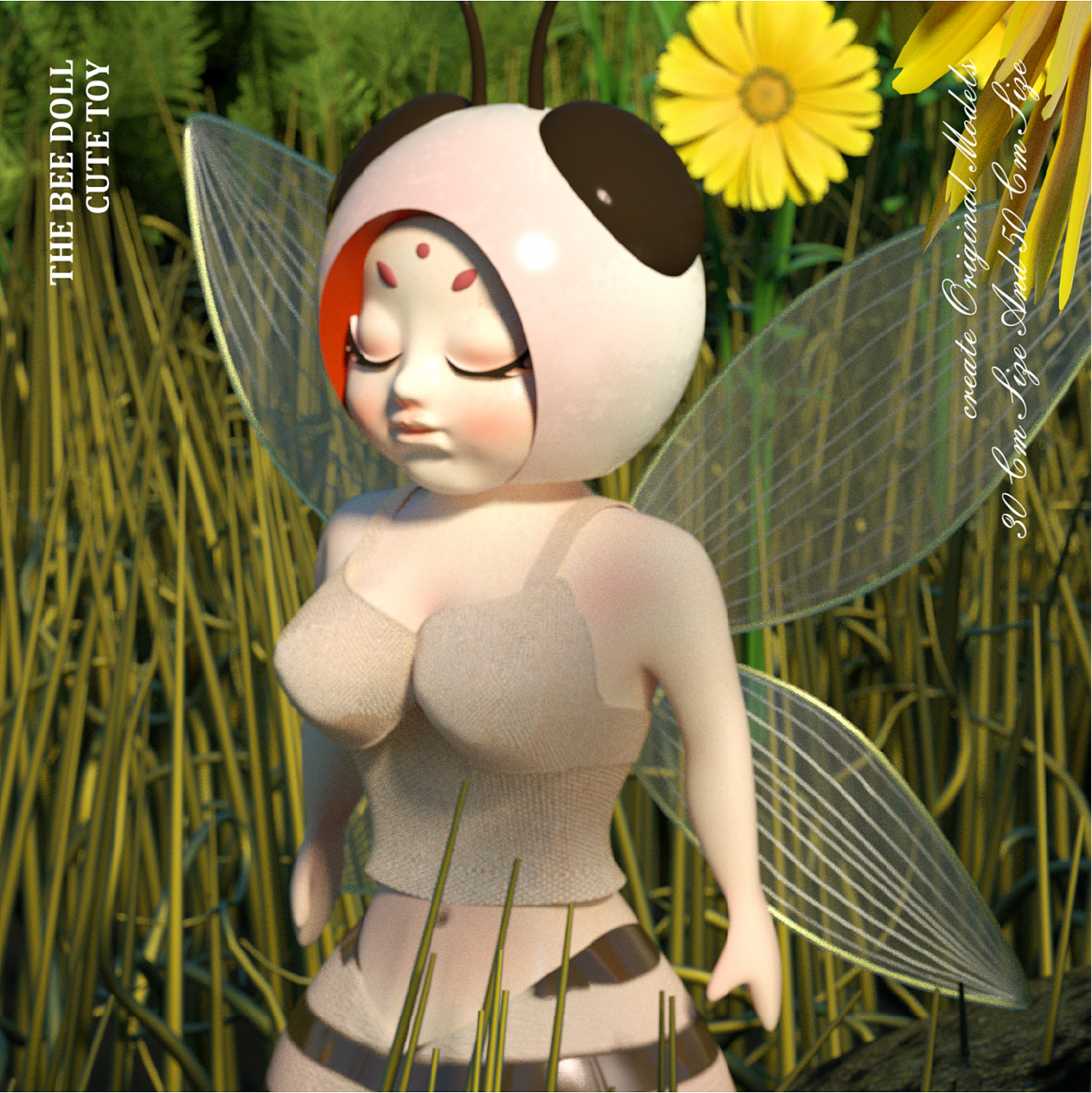 蜜蜂(遇见蜜蜂):蜜蜂是人类的好朋友,能够进行授粉,对地球生态环境至关重要。手办设计以深受人们喜爱的蜜蜂为参考,进行拟人化的设计。突出蜜蜂的黄色黑条纹身体和翅膀的细节,表现出活泼可爱的形象。