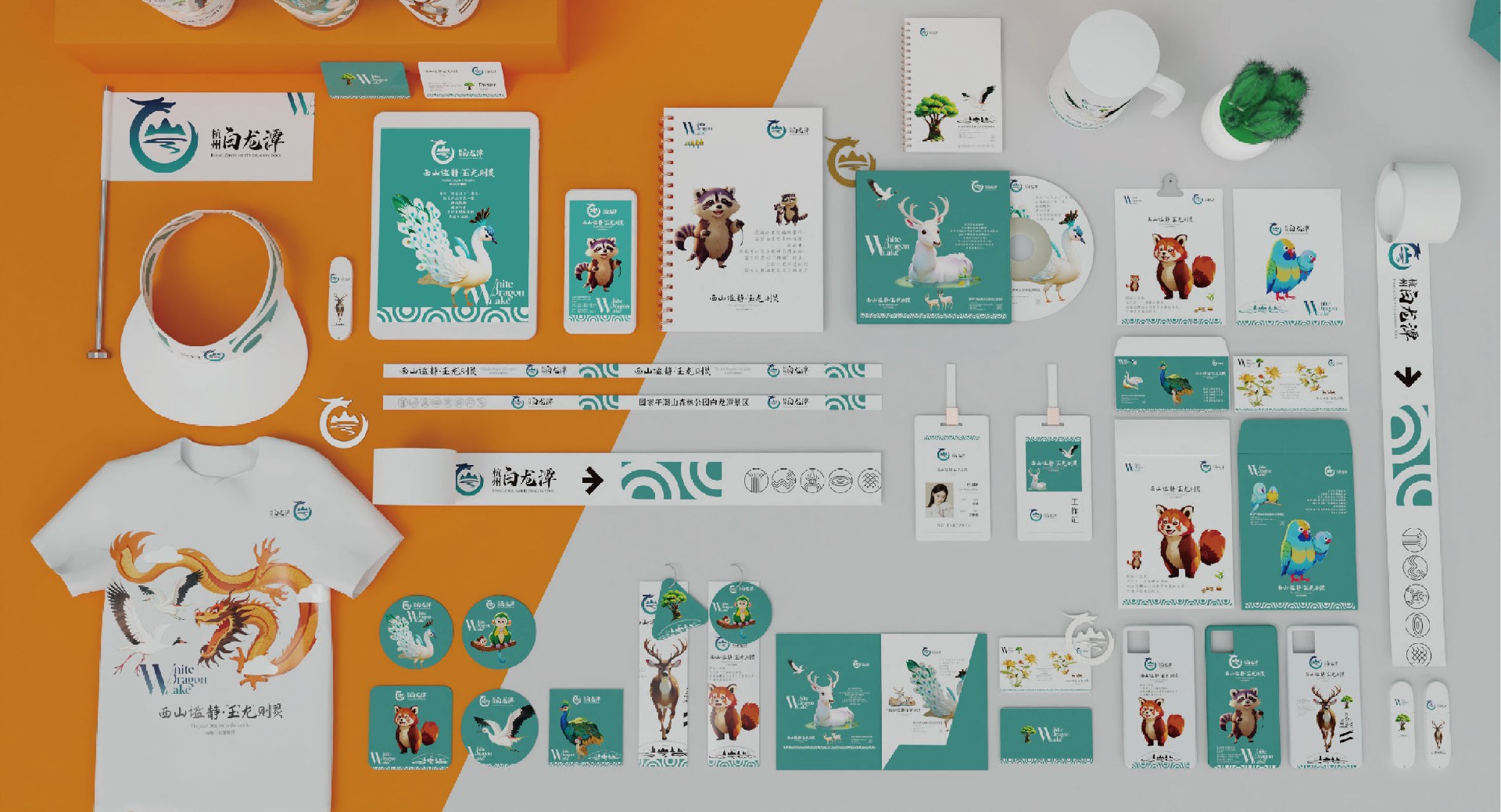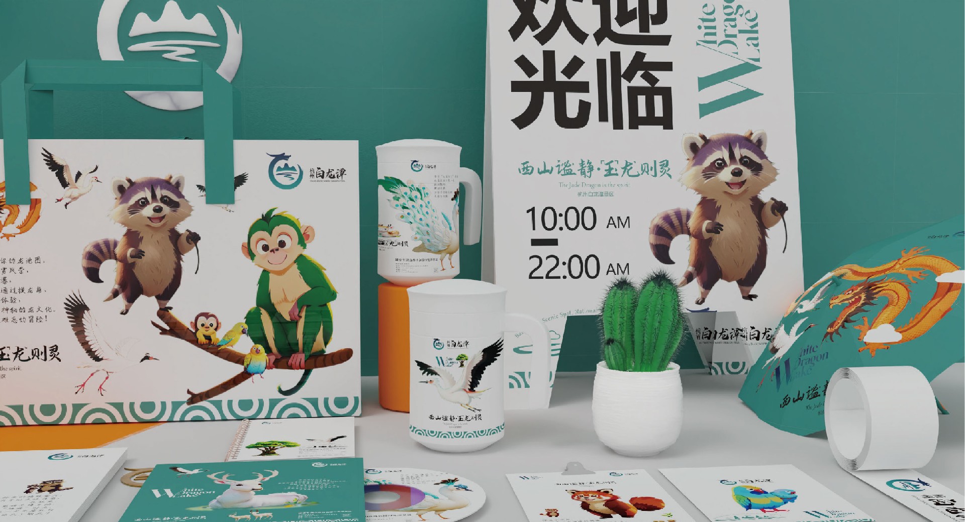在当今竞争激烈的旅游市场中,景区的品牌形象设计不仅仅是视觉呈现,更是对景区独特魅力和精神内涵的深度挖掘和表达。白龙潭作为一个以自然美景著称的景区,其品牌VI(视觉识别)形象设计必须充分体现出其独特的地理环境、文化氛围和游客体验。本文将详细阐述白龙潭品牌VI形象设计的全过程,从构建景区的世界观到实际设计实施,以青绿色配色和自然动物插画为基础,打造出一个令人难忘且充满吸引力的品牌形象。