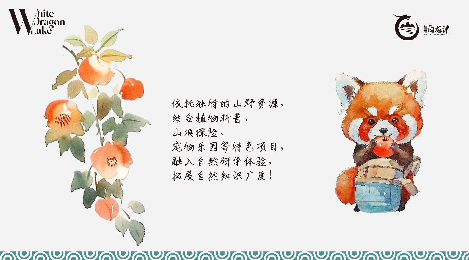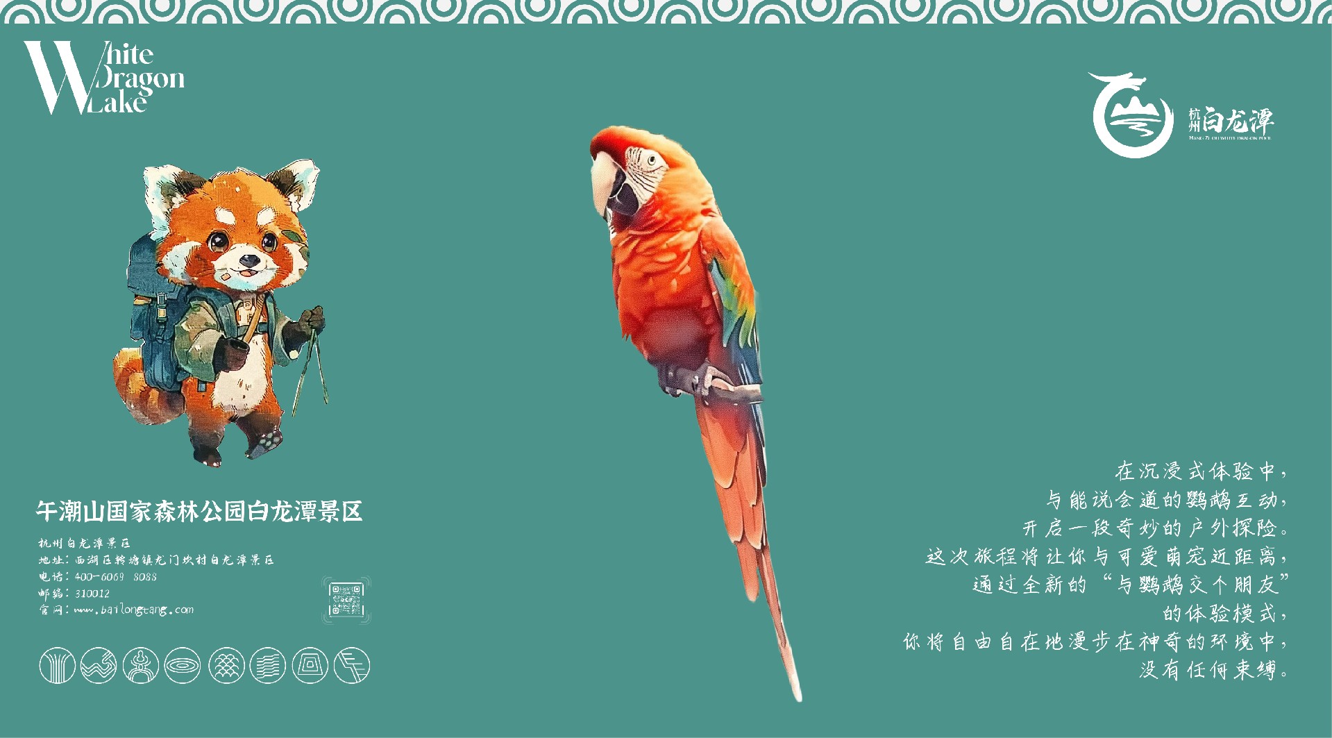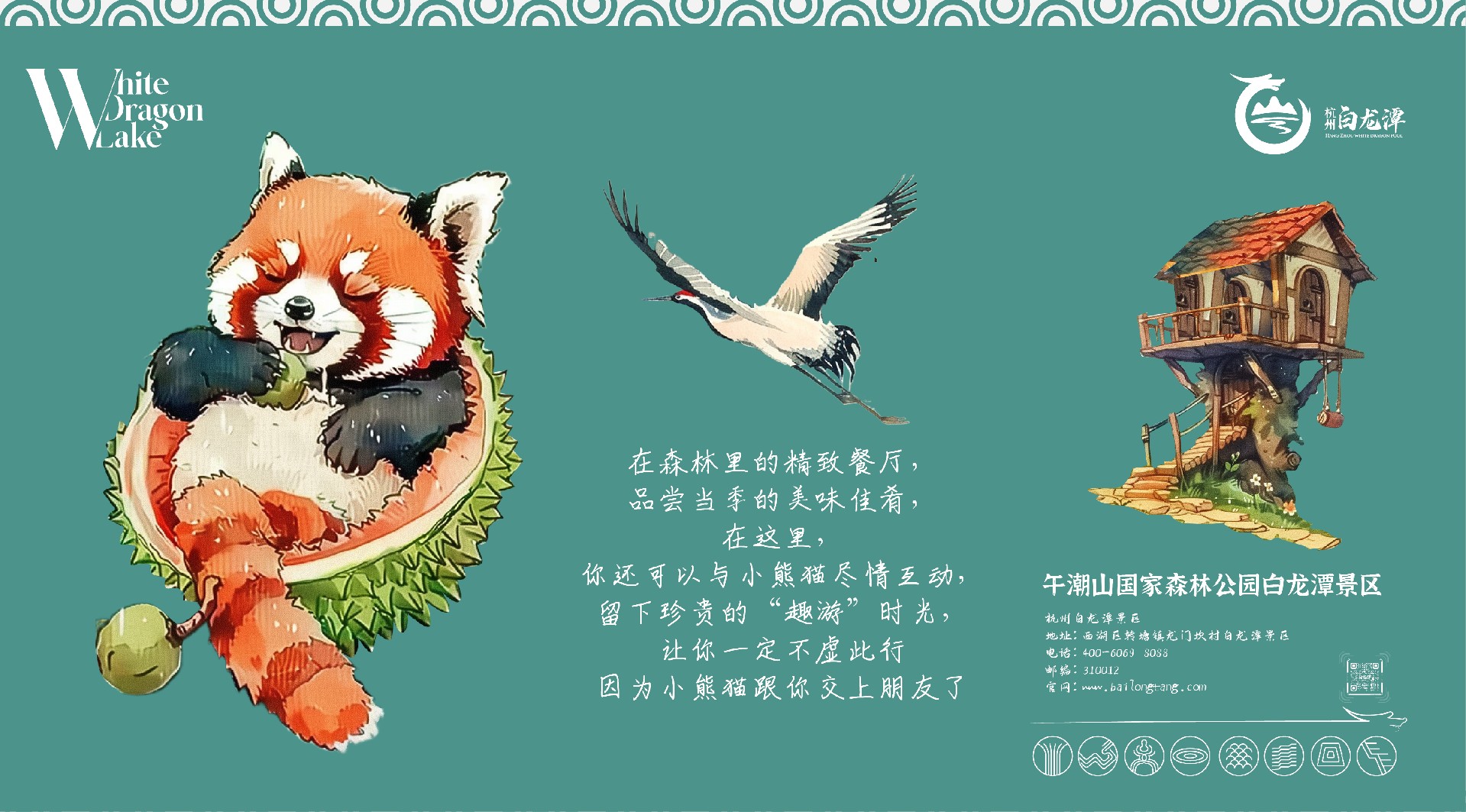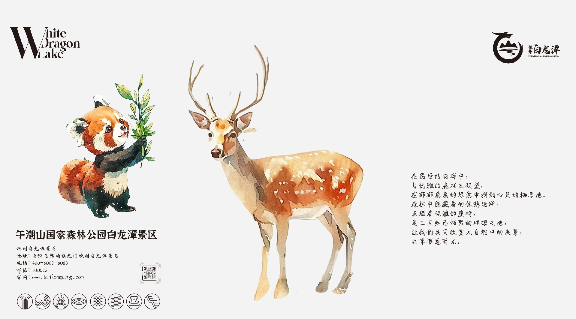 在宣传材料的设计中,设计团队注重通过青绿色的主色调和动物插画的搭配,展现白龙潭的自然美景和生态特色。无论是宣传册、海报还是其他广告材料,都充分运用了自然元素,以直观的视觉表现吸引潜在游客。