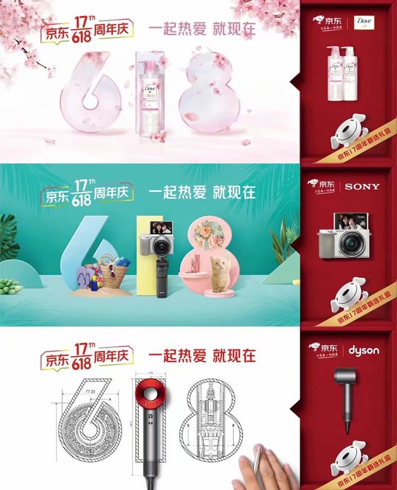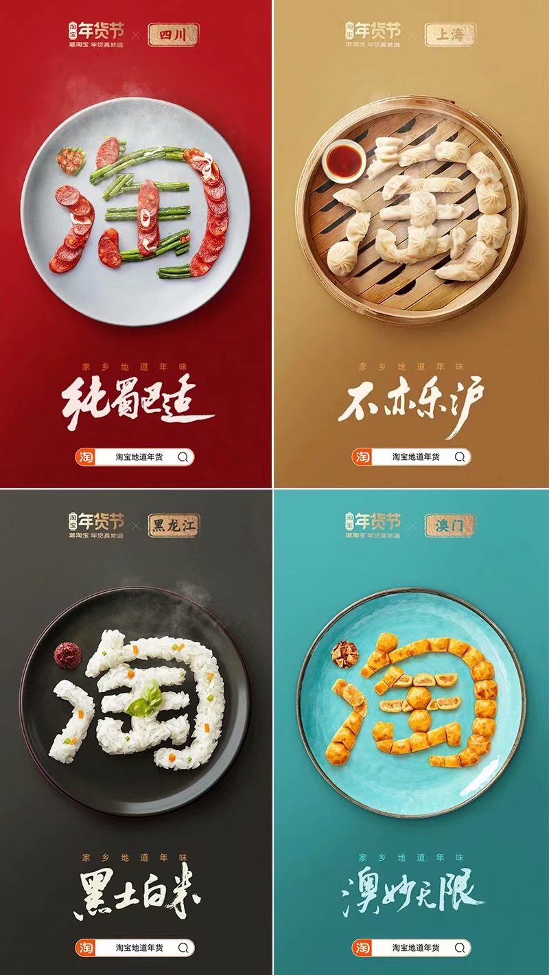 二是用文字作为视觉符号,比如淘宝年货节海报和京东618海报。