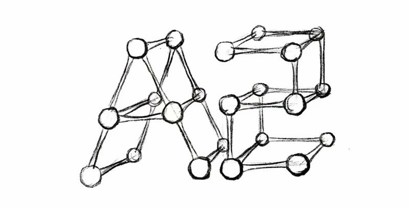怎么设计这个视觉符号呢?为了让人更易理解,直接以字母A2作为视觉符号最为合适,当然我们不能直接用一个字体把A2打出来,而应该对其进行设计,一是为了增加符号的独特性;二是使其变得更丰富,太简单的图形作为视觉主体的时候会很单薄。