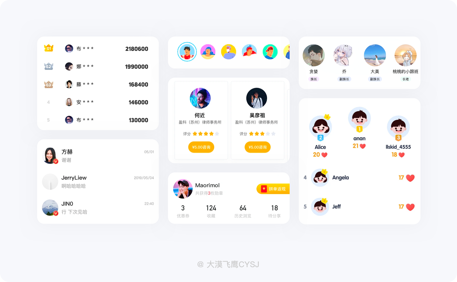 「无头像不社交」,在设计界面之前,设计师应该考虑清楚产品社交属性的等级,再来决定头像在界面中的权重、占比,至于如何使用,还需根据产品的实际情况并结合用户头像的基础知识合理的做出判断。